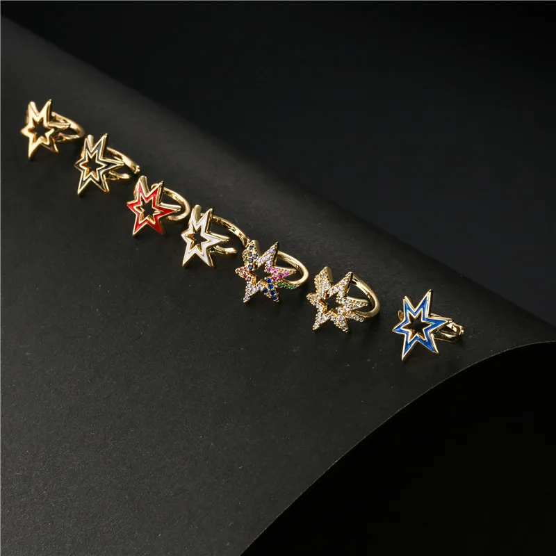 1 шт. модные серьги-клипсы золотого цвета 7 стилей звезды Роскошные серьги с фианитами женские свадебные украшения для девочек Рождественский подарок