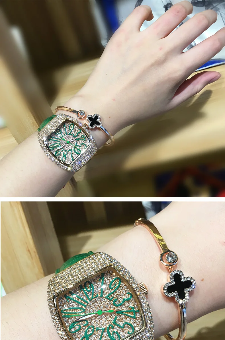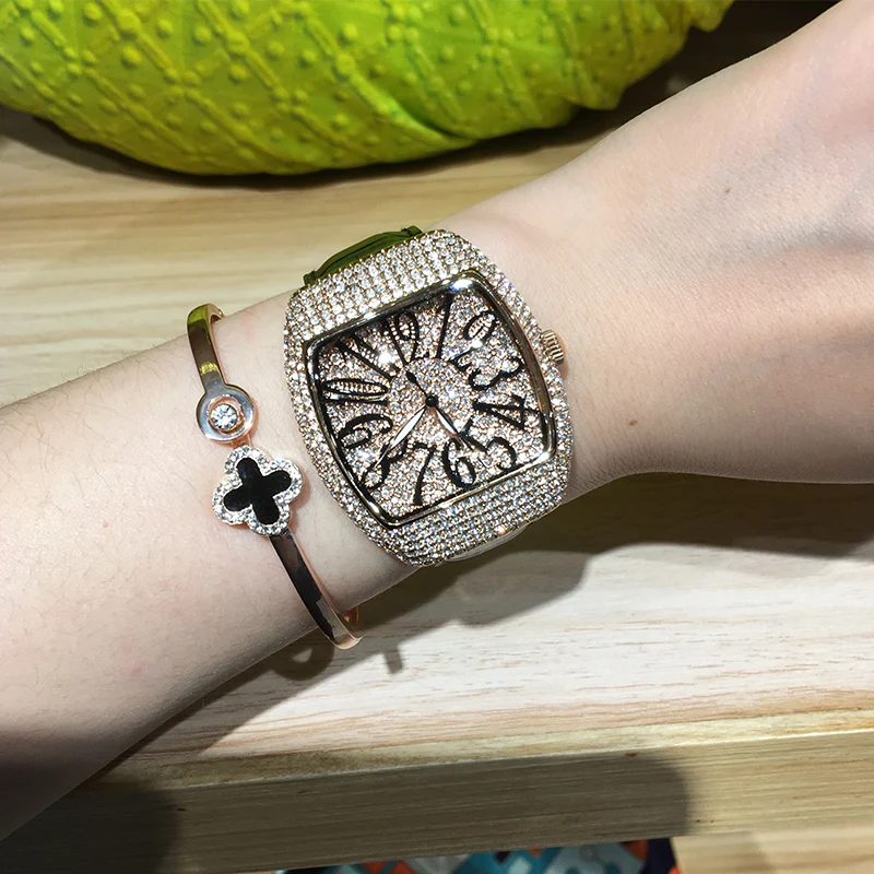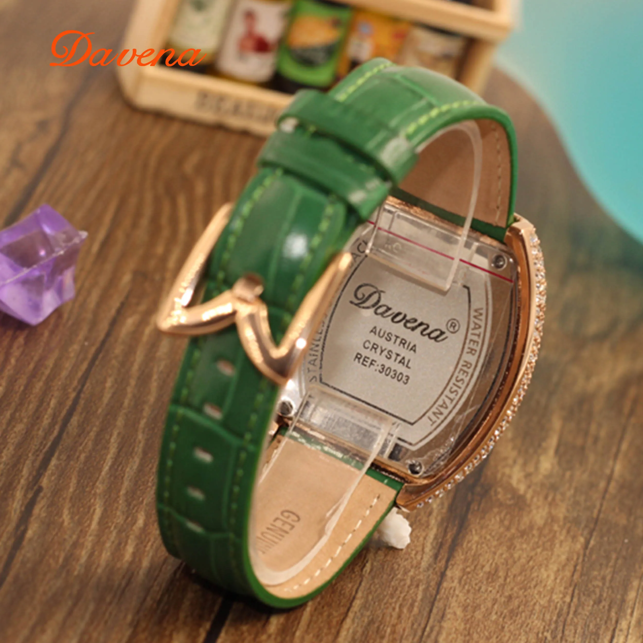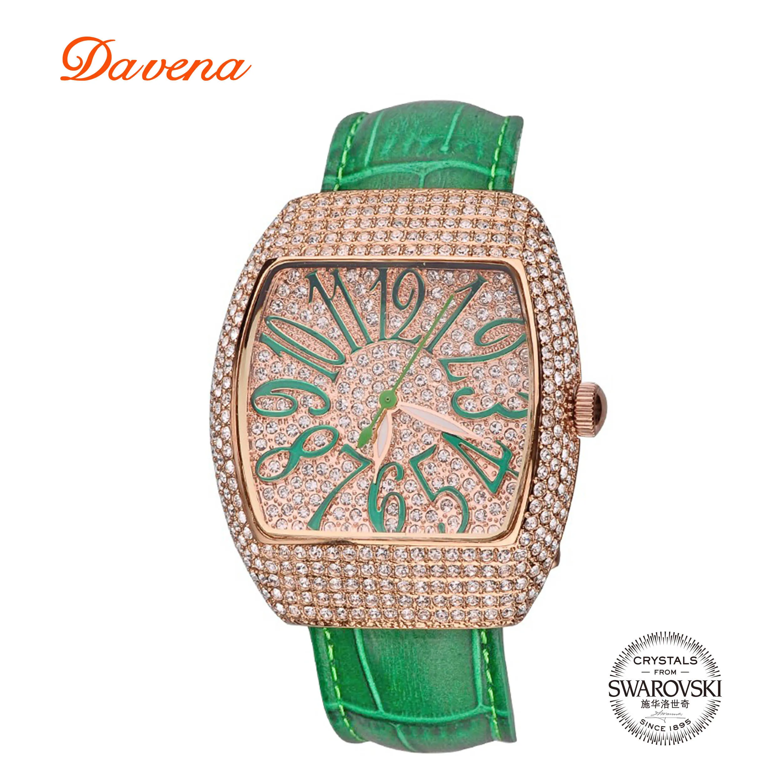 Роскошные женские часы Davena японский Mov не классический Кристальный элемент женские часы Изысканный модный браслет из натуральной кожи подарочная коробка для девочек