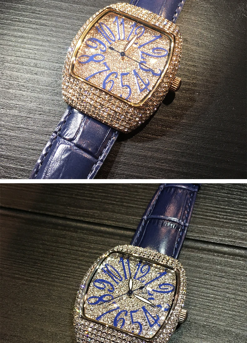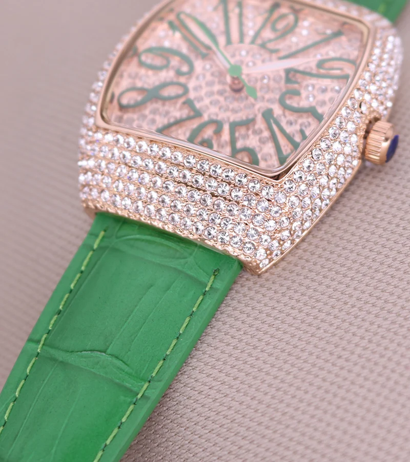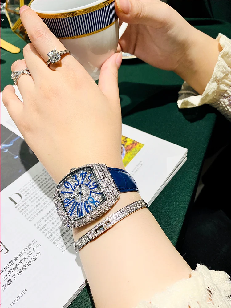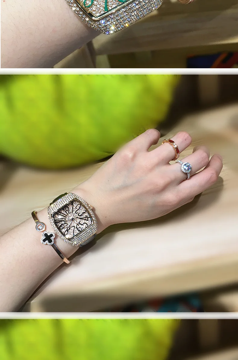 Роскошные женские часы Davena японский Mov не классический Кристальный элемент женские часы Изысканный модный браслет из натуральной кожи подарочная коробка для девочек