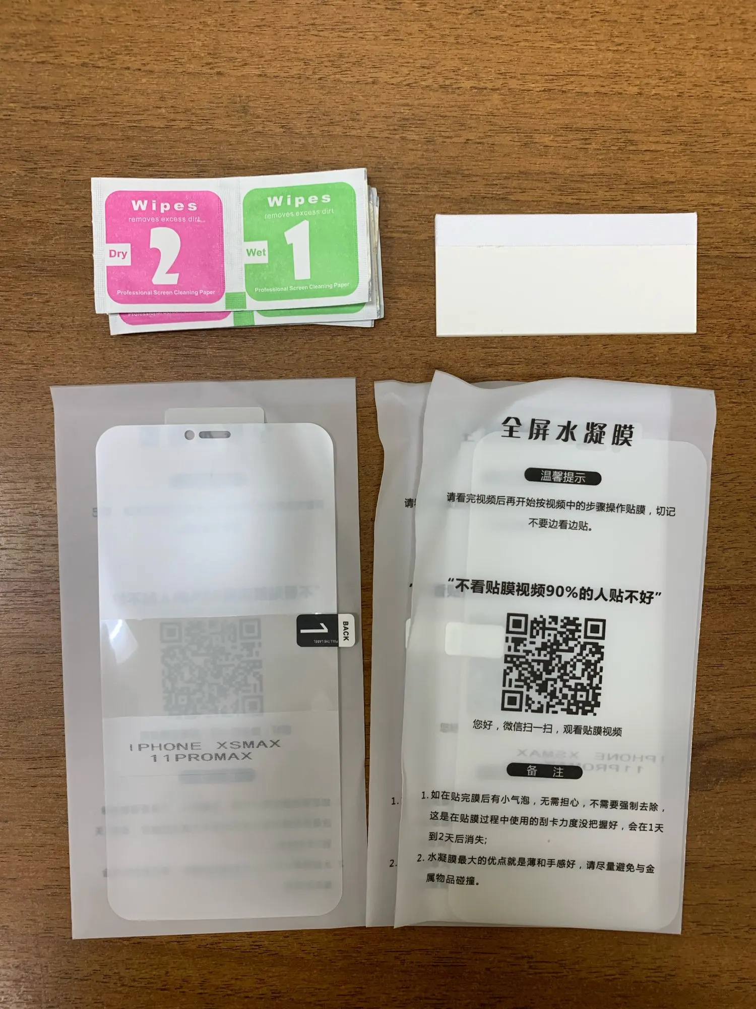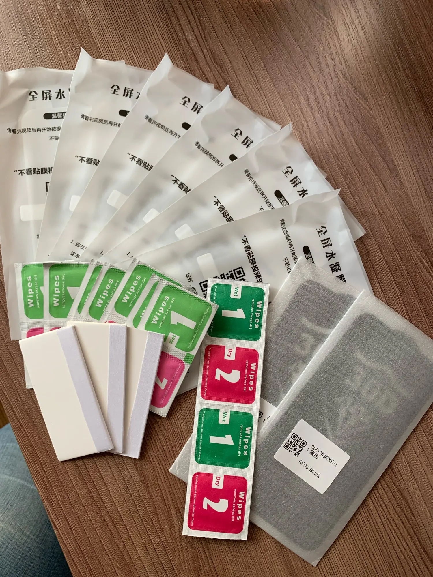 В наборе три пленки, три комплекта маленьких салфеток (влажная и сухая) и картонка для наклеивания пленки. Пленка хорошо садится, незаметна на телефоне. Наклеивать ее несложно, это делается в несколько этапов. Но перед наклеиванием лучше посмотреть ролик на ютубе, как это правильно сделать (наклеивая впервые можно запутаться и испортить пленку). Я заказала уже во второй раз, предыдущие меняла примерно раз в 2-3 месяца (повреждений не было, но немного теряется идеальная гладкость экрана. Пленка мягкая и под воздействием других предметов со временем может немного проминаться).