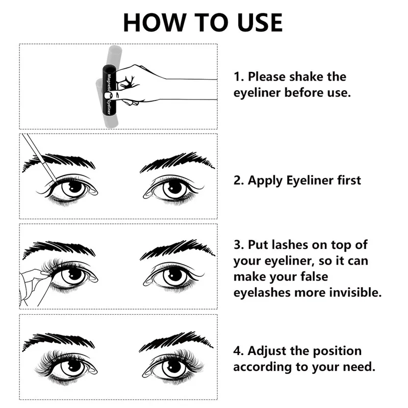 Набор из 5 магнитных ресниц, жидкая подводка для глаз и магнитные н...