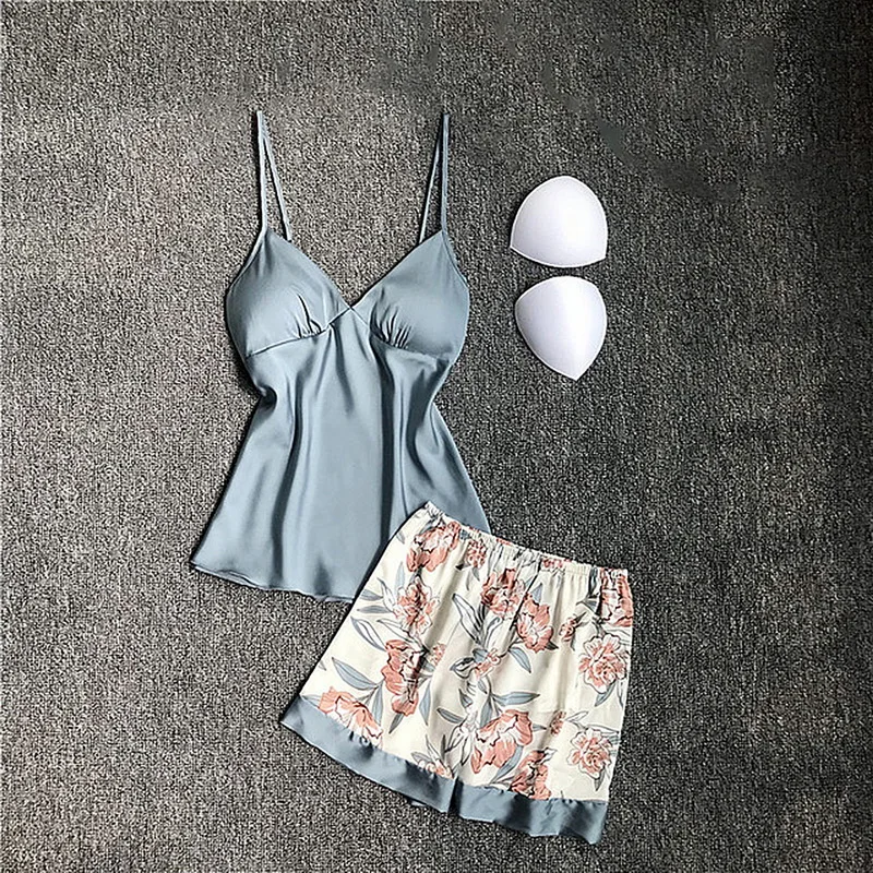 Пижама женская атласная, на зимуосень, с подкладками на груди