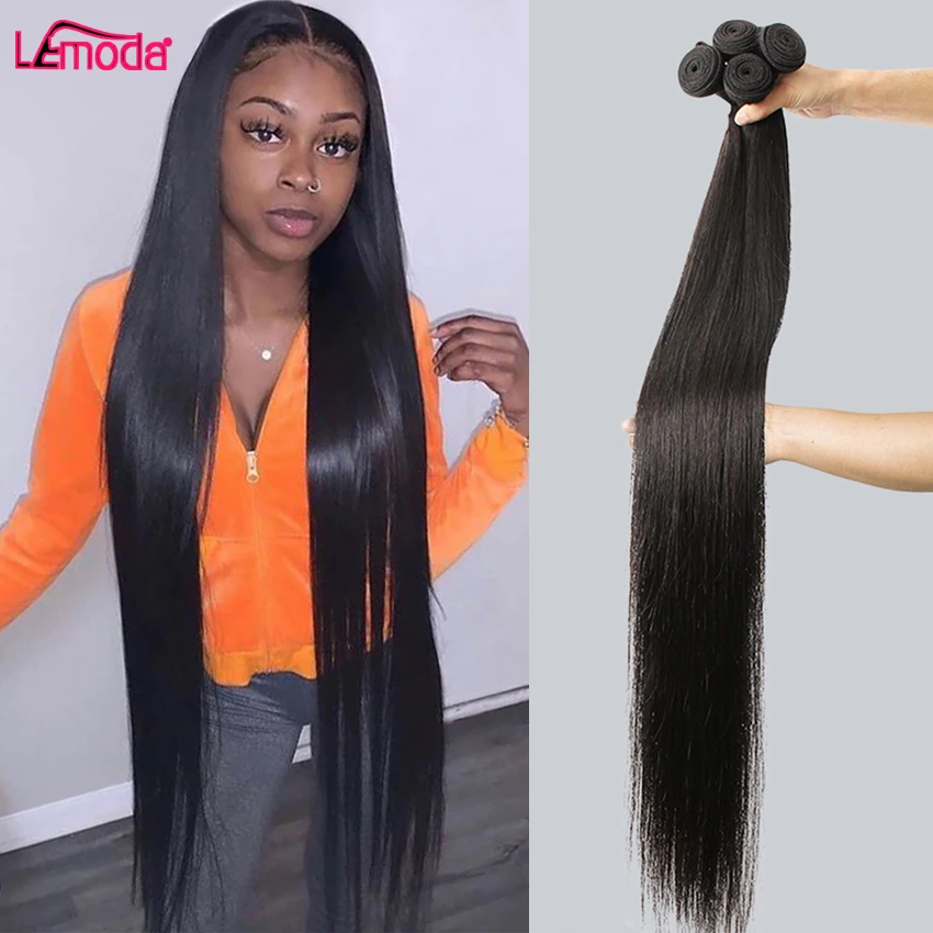 Прямые пряди бразильских человеческих волос пряди 28 30 дюймов Пряди для наращивания волос Lemoda натуральный Цвет Remy 1 3 4 пряди волос плетение