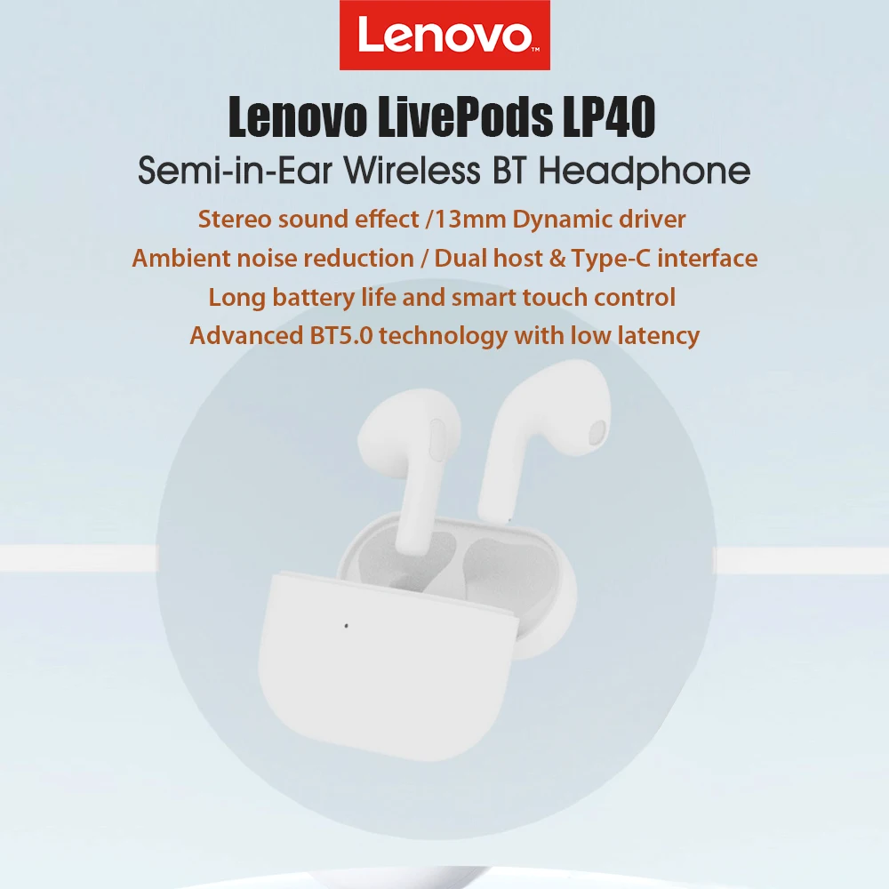 Полувкладыши Lenovo LivePods LP40, наушники BT 5,0, беспроводные на...
