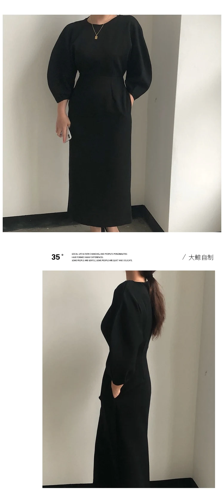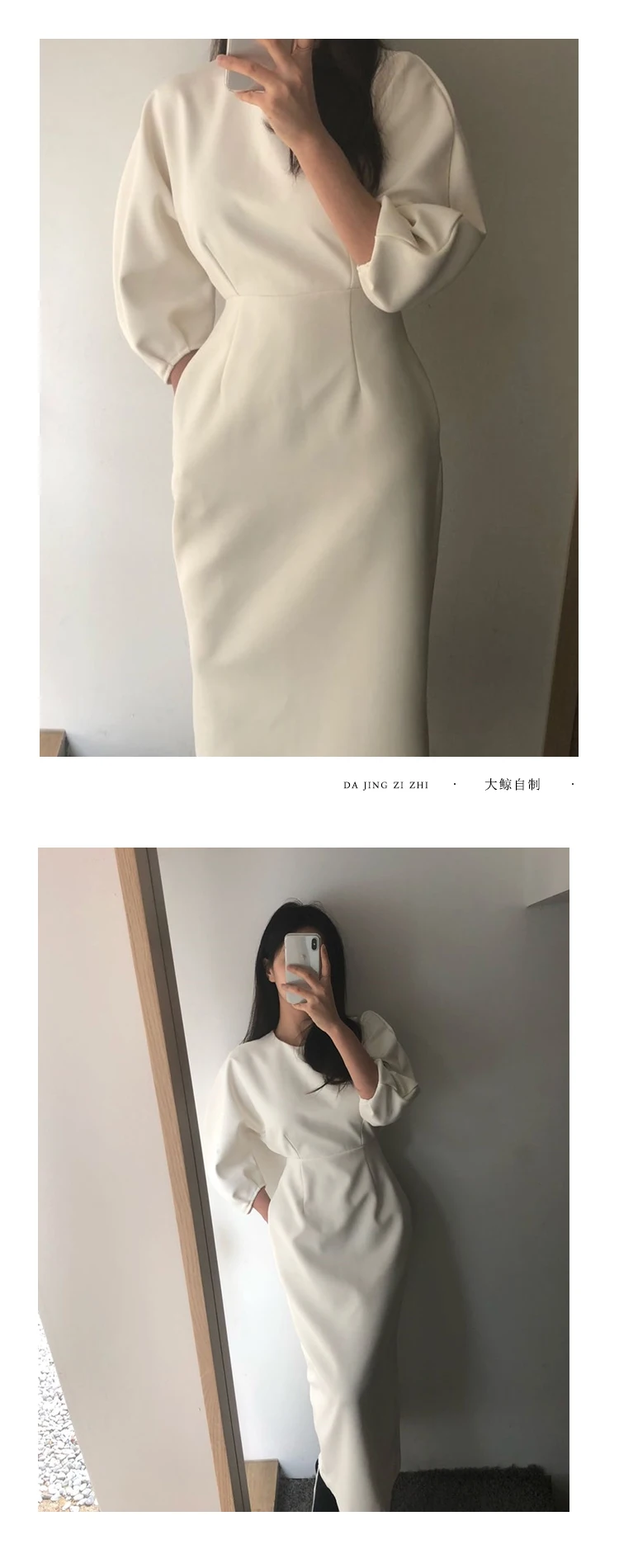 Женское весенне-осеннее однотонное Повседневное платье миди, офисное женское элегантное модное рождественское платье с круглым вырезом, женская верхняя одежда, Халат