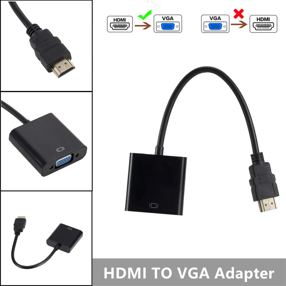 Кабель-преобразователь HDMI в VGA, переходник HDMI штекер в VGA разъем, цифровой аналоговый HD 1080P для ПК, ноутбуков, планшетов, HDMI, VGA