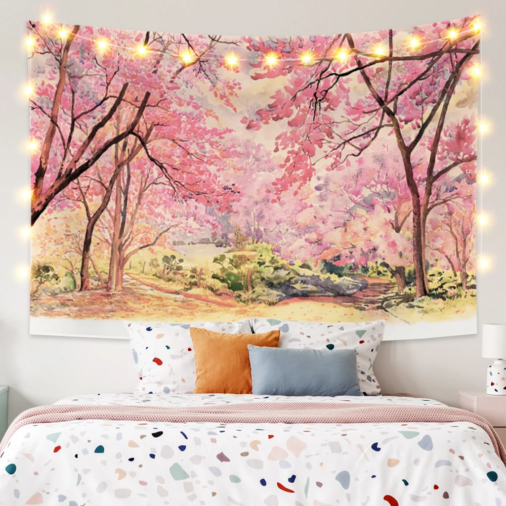 Натуральный гобелен с пейзажем вишня в цвету весенний пейзаж мода на стене спальня общежития Арт Декор пляжный коврик для пикника