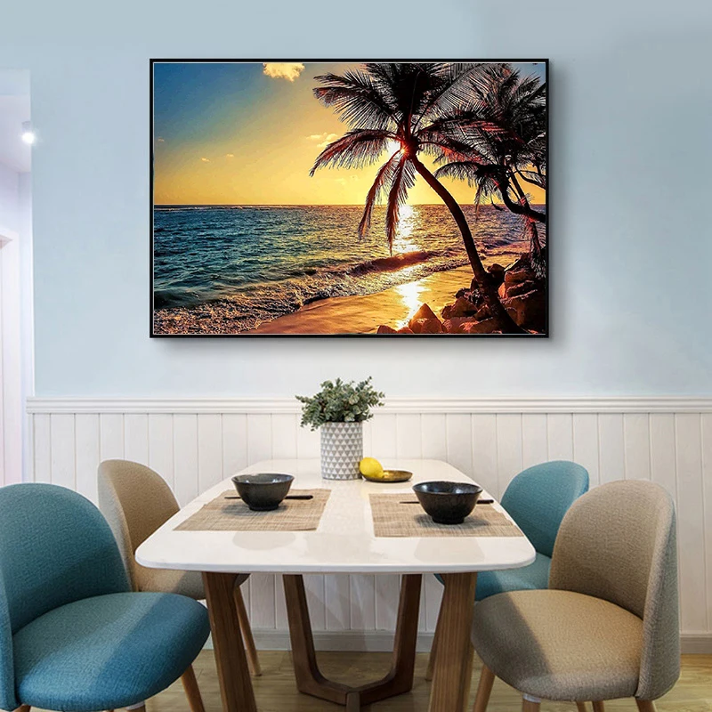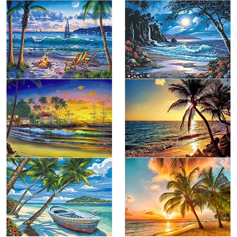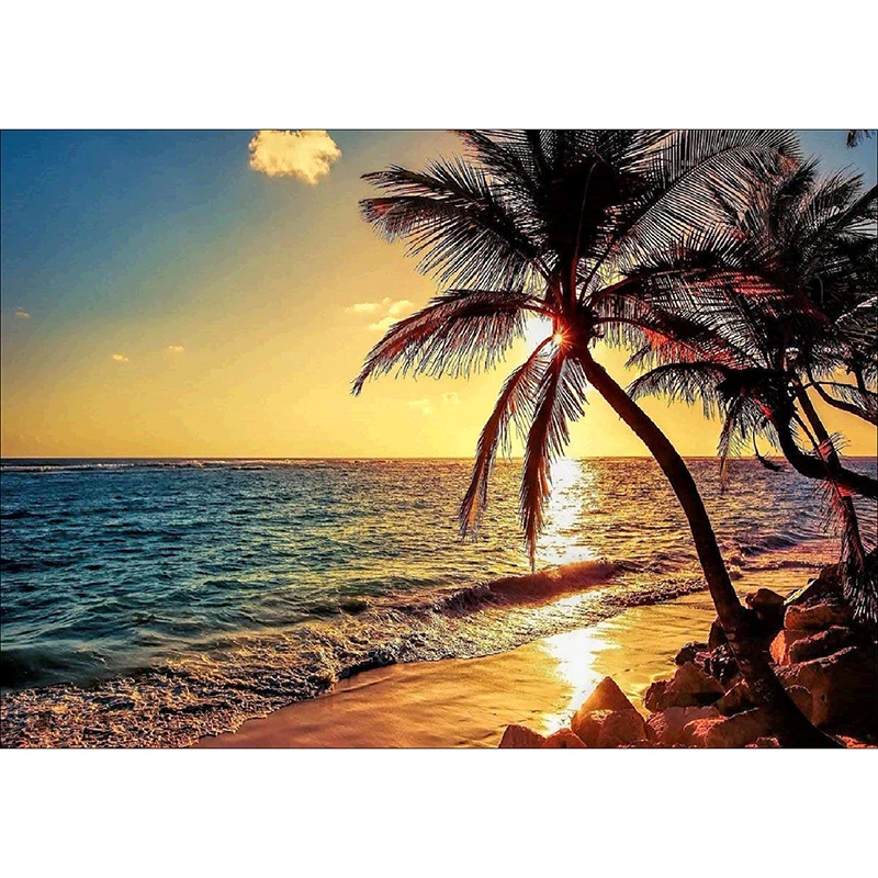 DIY 5D алмазная живопись закат на пляже Алмазная вышивка море вид вышивка крестиком Мозаика круглаяквадратная дрель искусство домашний Декор подарок