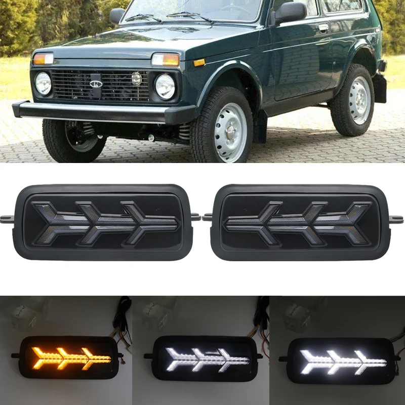 Пара аксессуаров для стайлинга автомобилей Светодиодный ные дневные ходовые огни для Lada Niva 4x4 1995- 2019 с ходовыми поворотниками, лампа DRL