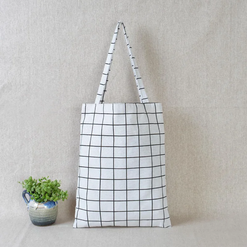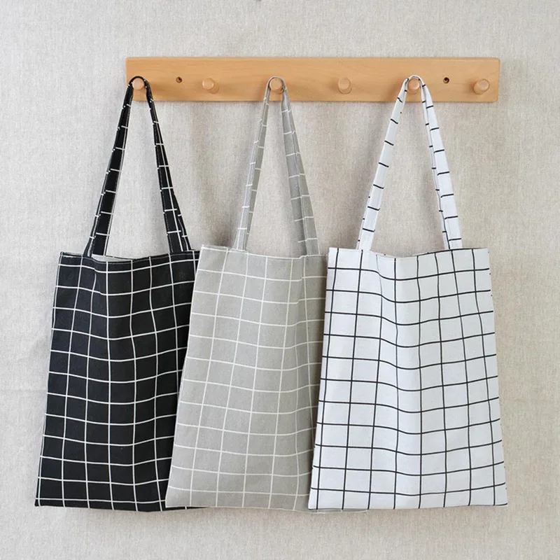 Холщовая Сумка-тоут, эко-сумка для покупок, складная сумка для ежедневного использования, большая клетчатая Холщовая Сумка-тоут для женщин, женская сумка-шоппер
