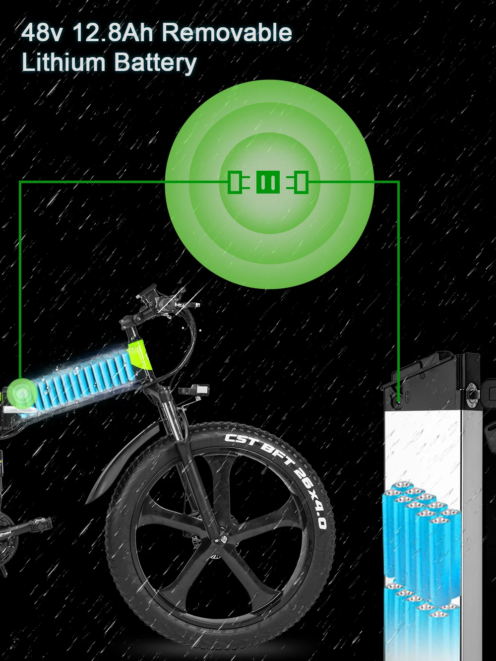 ● 48V 12.8Ah съемный литиевый аккумулятор (LG/Panasonic литиевая батарея опционально)