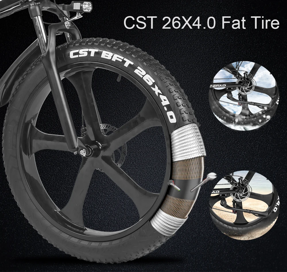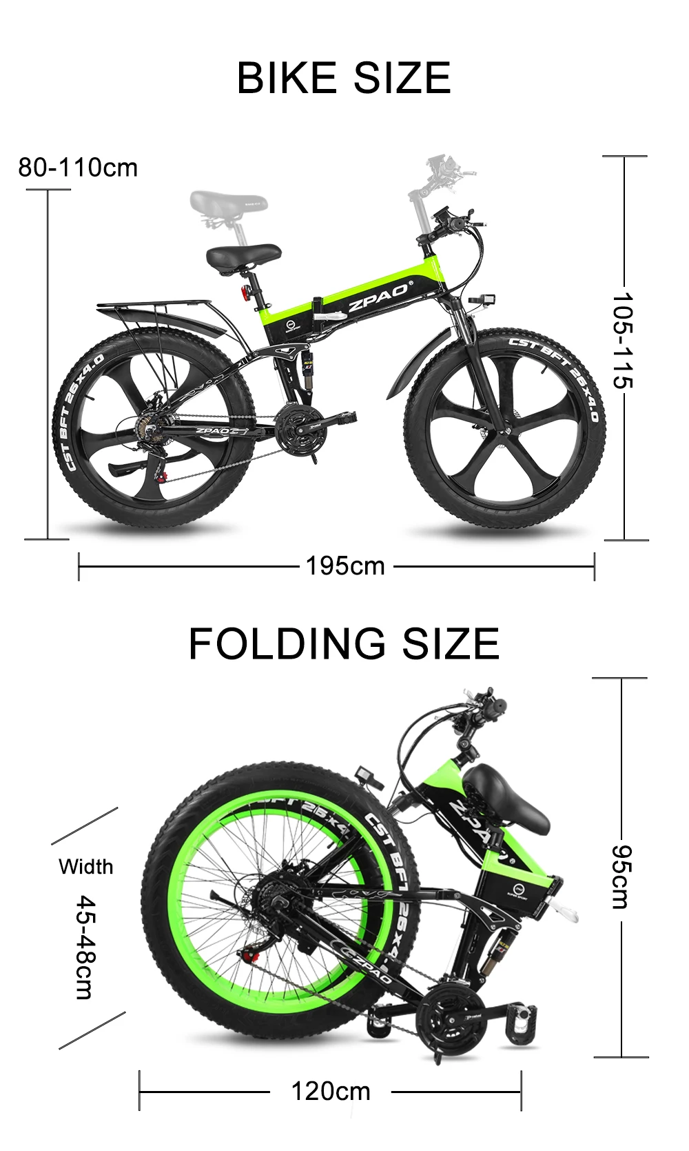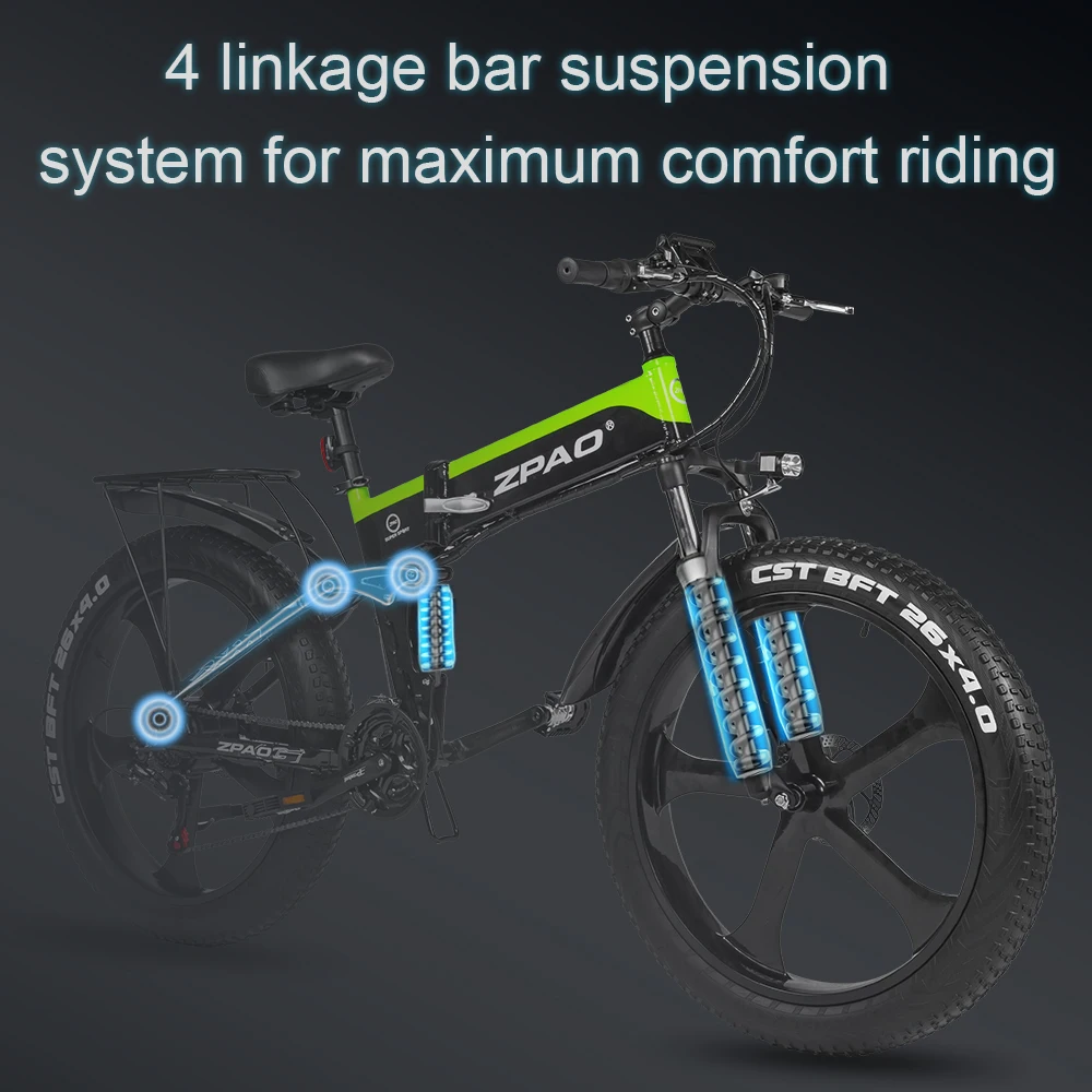 Велосипед электрический ZPAO складной, 48 В, 1000 Вт, 26 дюймов, 4,0 дюйма