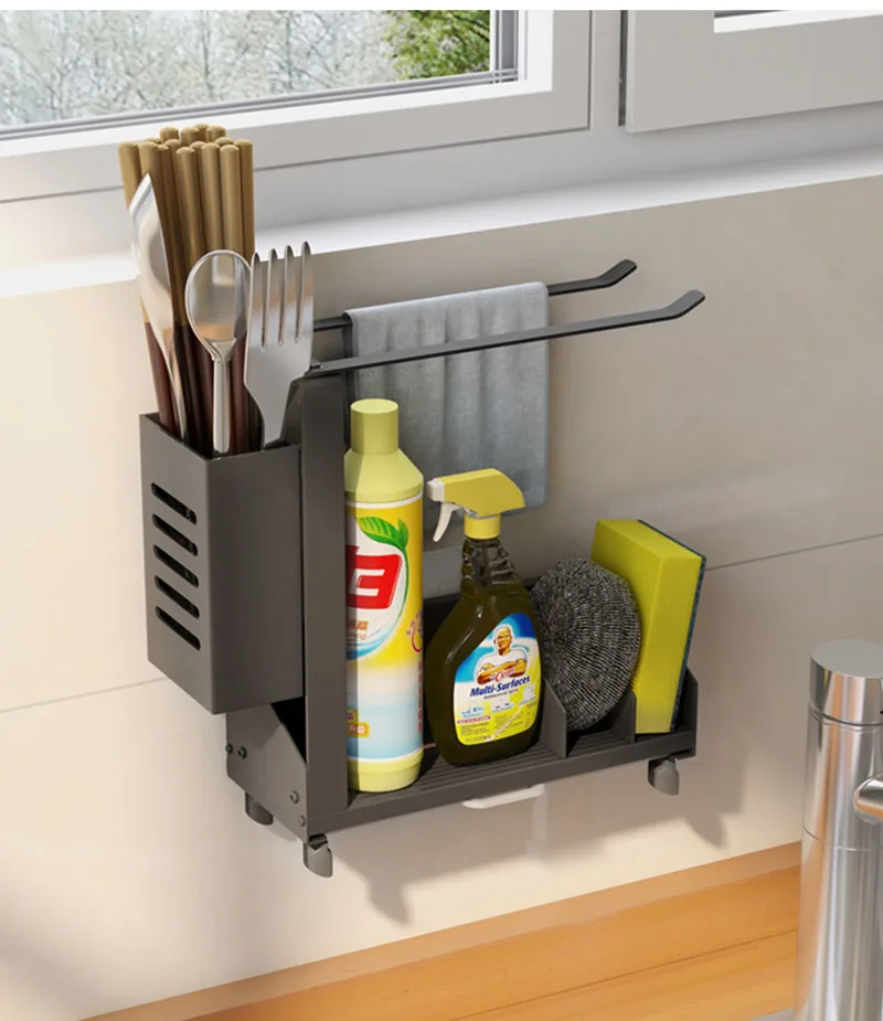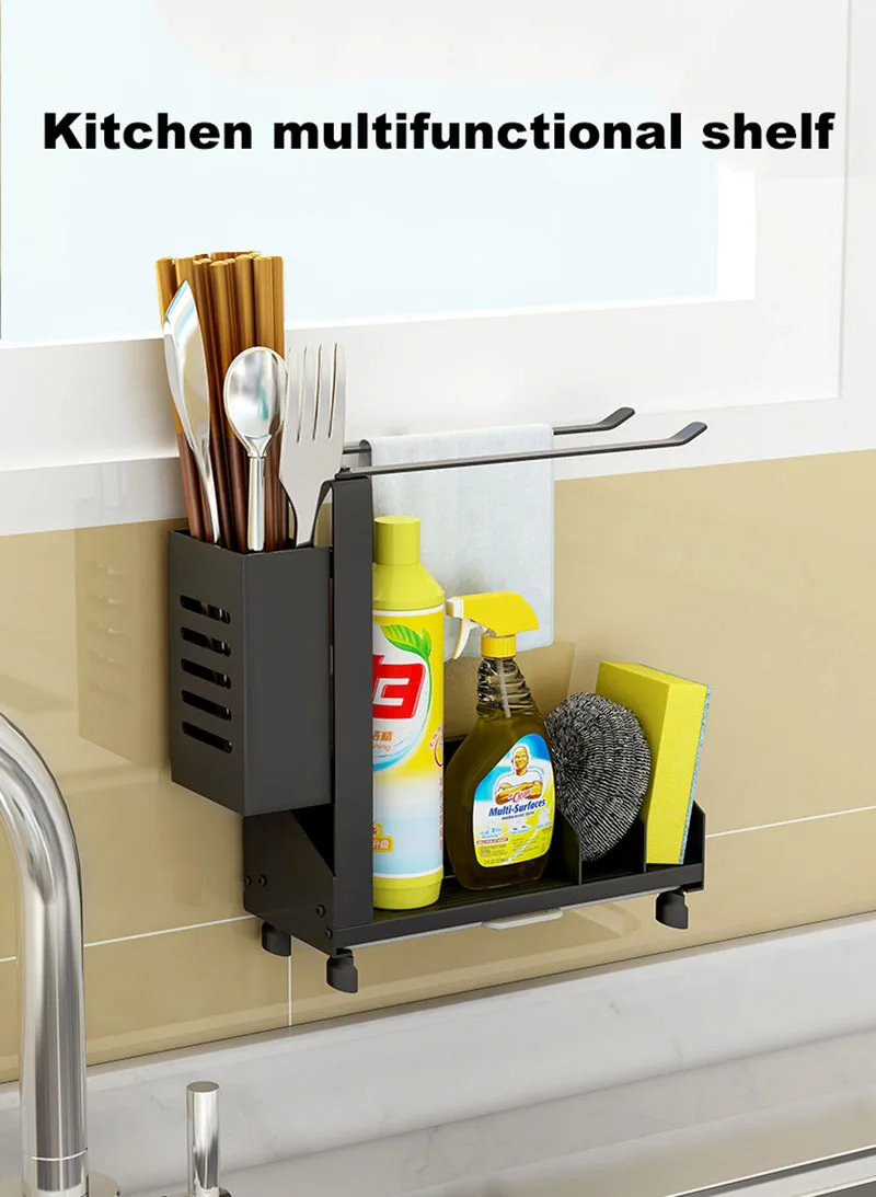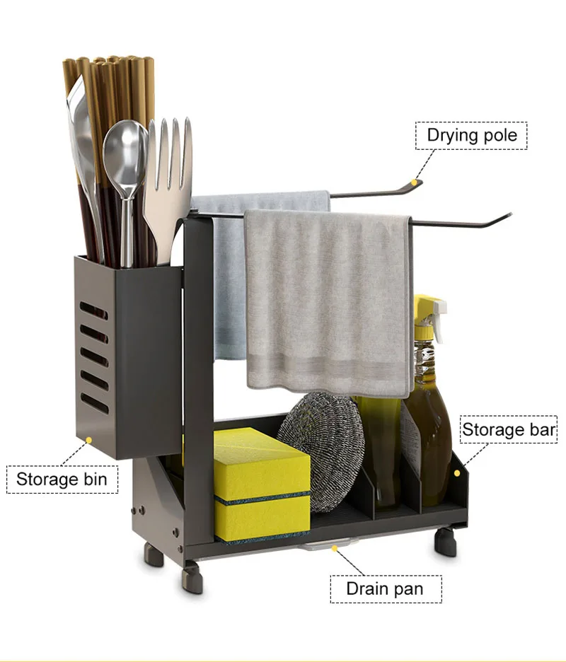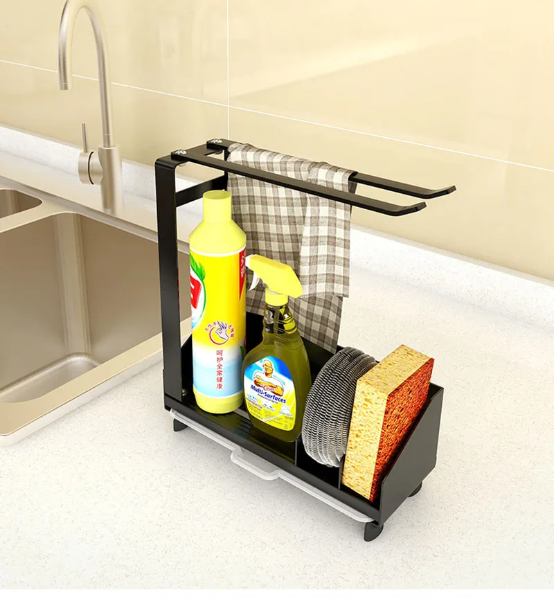 Черный Многофункциональный Губка тряпка сушилка с сушилкой для посуды сушилка для посуды Кухня службы столешницу Организатор утвари для хранения для дома