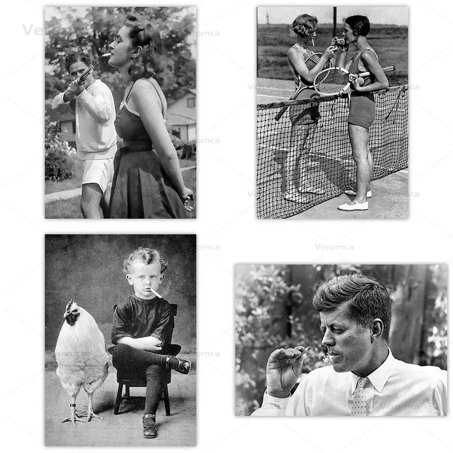Винтажный постер, фотопечать, женские теннисные сигареты, куриный петух, мальчик, курительный постер Джон Ф Кеннеди, Необычные антикварные сигары