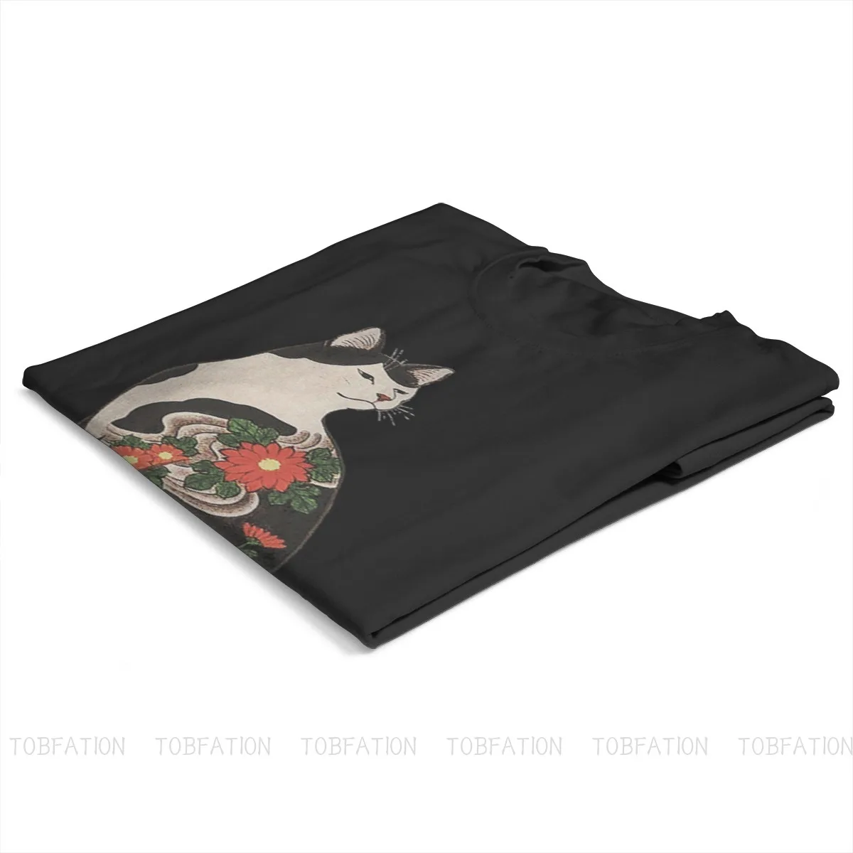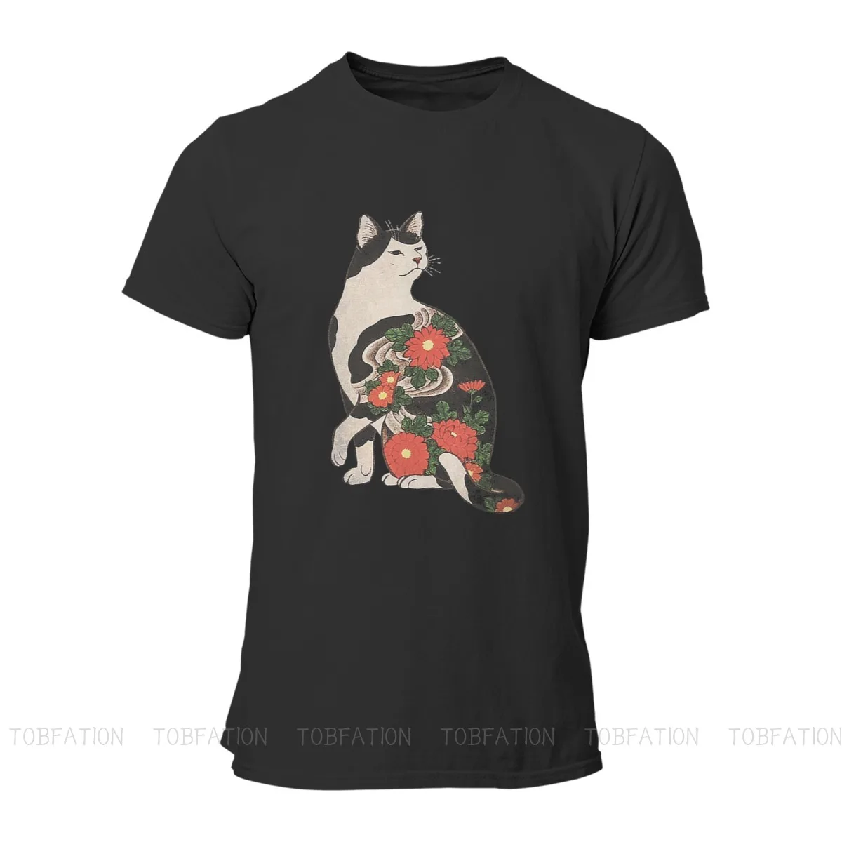 Новый летний Античная кошка с цветком татуировки хлопок серия укиё-э японского искусства гравюры Хокусай уличная одежда с графическим принтом Футболка