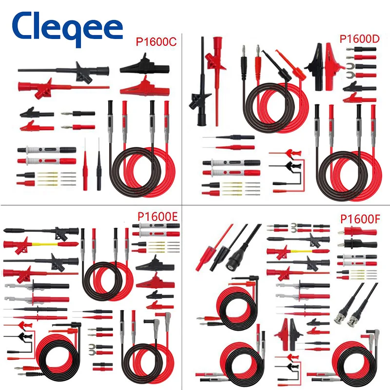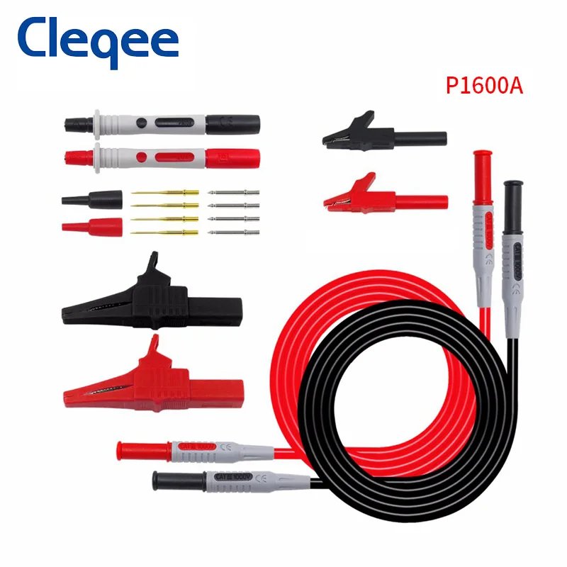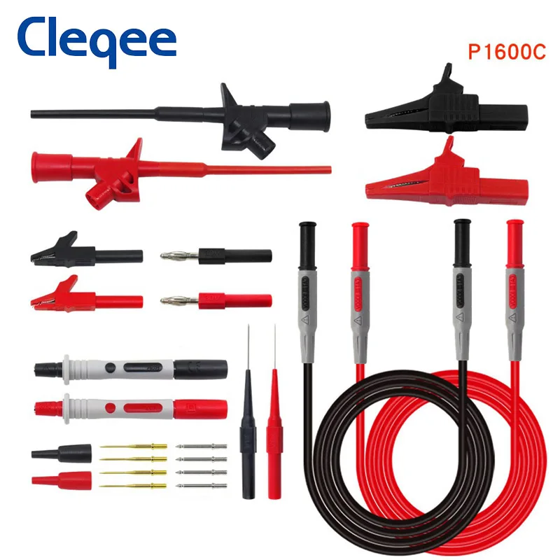 Cleqee набор тестовых проводов для мультиметра серии P1600, 4 мм штекер типа банан, тестовый зонд, зажимы с крючками IC, набор инструментов для ремонта автомобиля