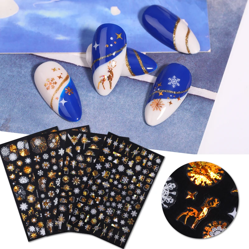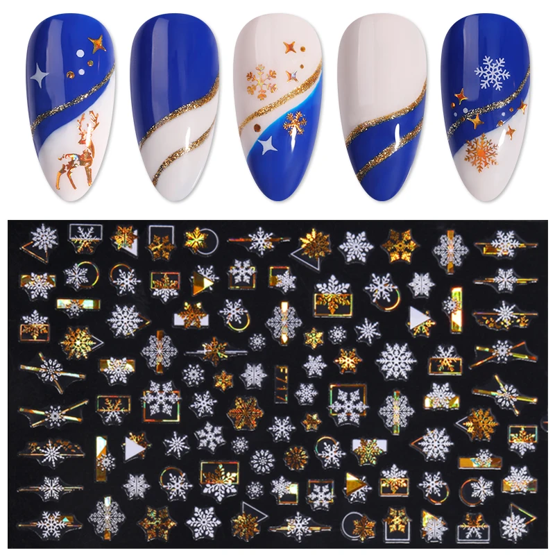 1 лист рождественских 3D наклеек для ногтей, снежные фотообои, бронзированные листья, Переводные слайдеры, маникюр, Золотые декоративные Материалы для творчества и ногтевого дизайна