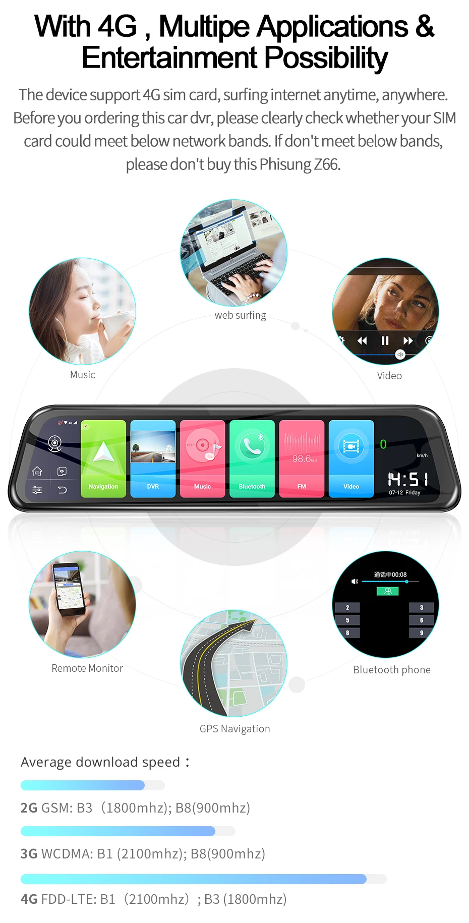 Автомобильный видеорегистратор, зеркало заднего вида 12 дюймов, 4G,...