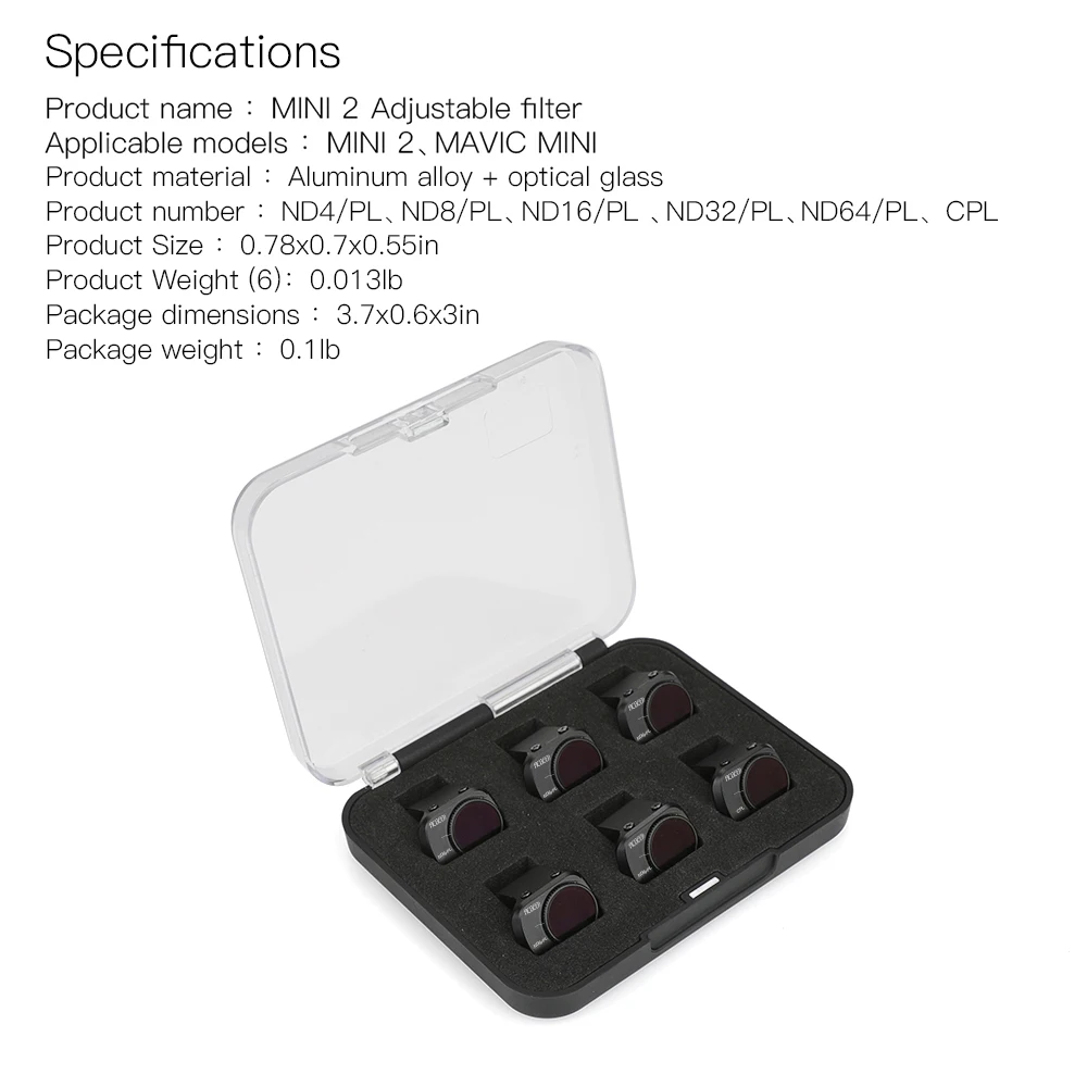 Набор регулируемых фильтров для DJI Mini 2, ND-PL CPL ND8 ND16 ND32 ND64 PL, аксессуары из алюминиевого сплава для DJI Mavic Mini