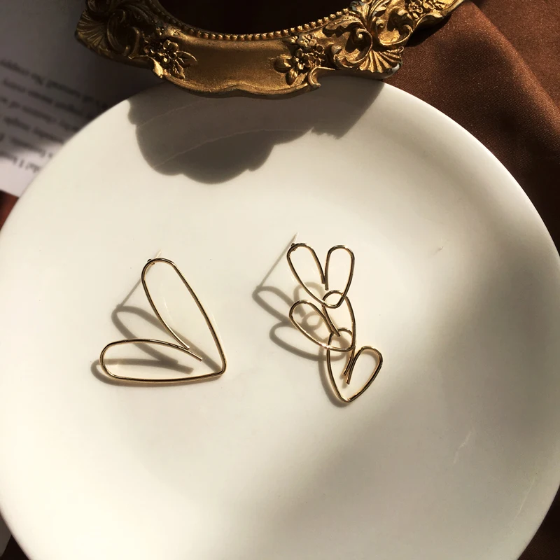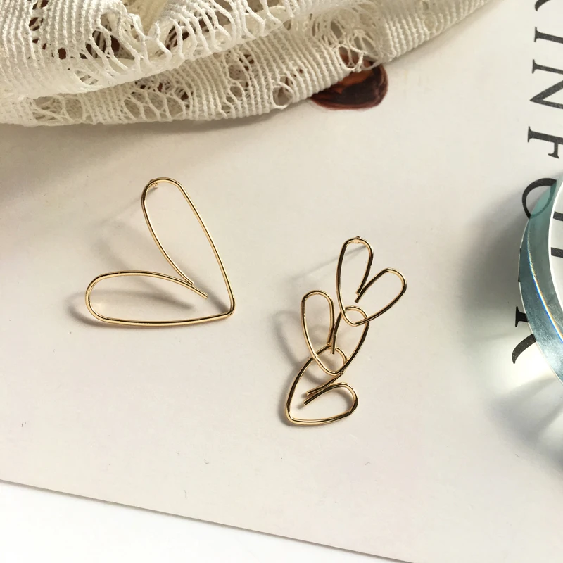 S925 иглы Новый ассиметричные серьги популярный дизайн металлического сплава с золотым покрытием с милыми сердечками и серьги для женщин, ювелирные изделия в качестве подарка