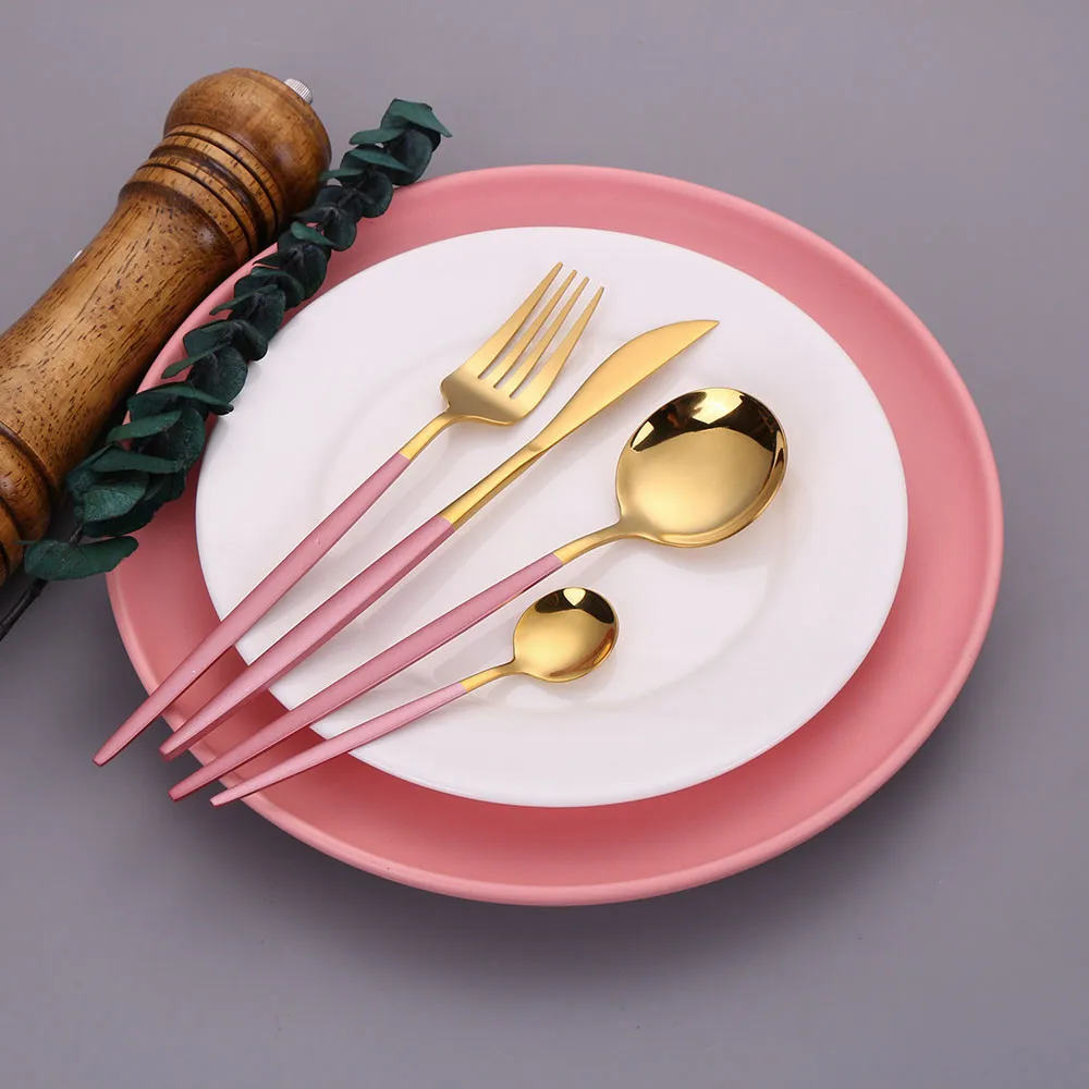 Набор столовых приборов из нержавеющей стали, 4 шт., набор посуды из 18/10 розового золота, кухонный набор, столовая посуда, ложка, вилка, нож, столовая посуда, Западная Посуда