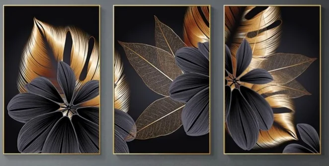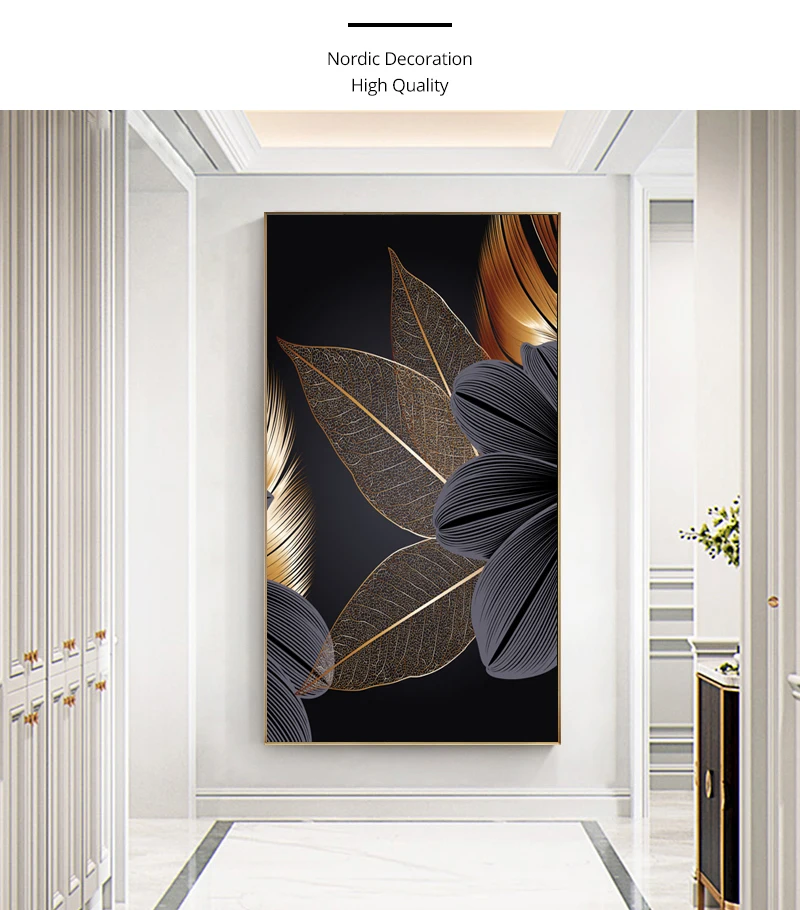 Абстрактная Роскошная Картина на холсте с цветами и листьями, Настенная картина для гостиной, Настенная картина с растениями, скандинавский черный медный плакат, Декор