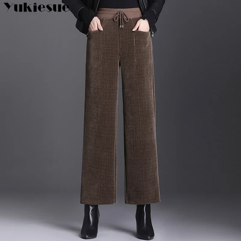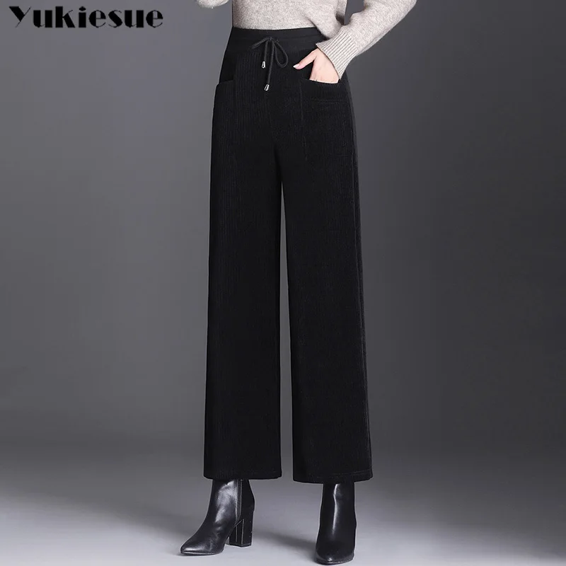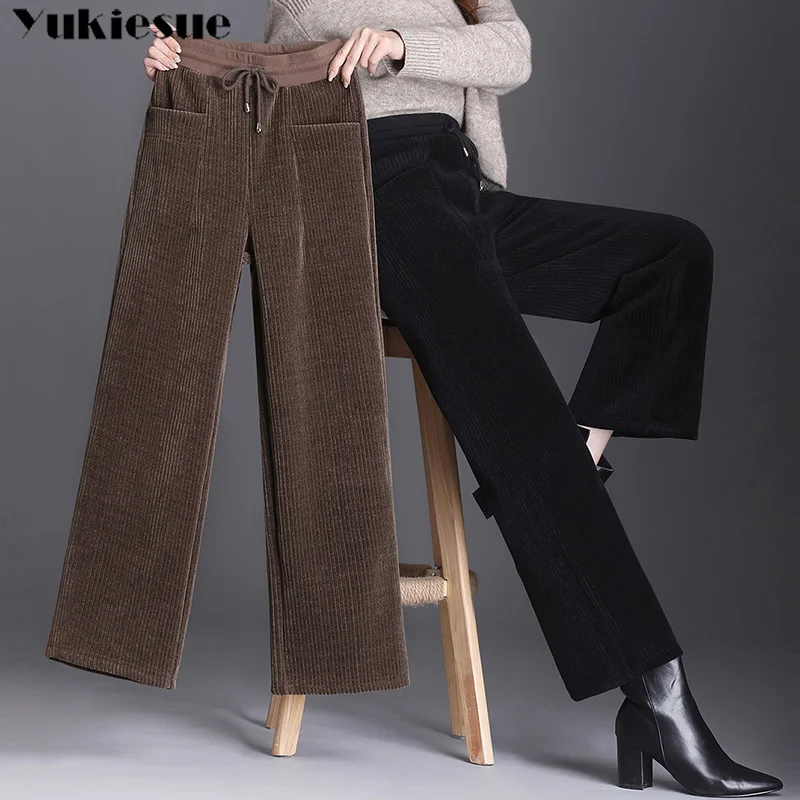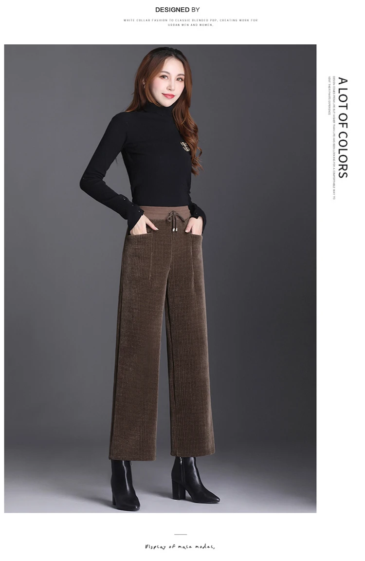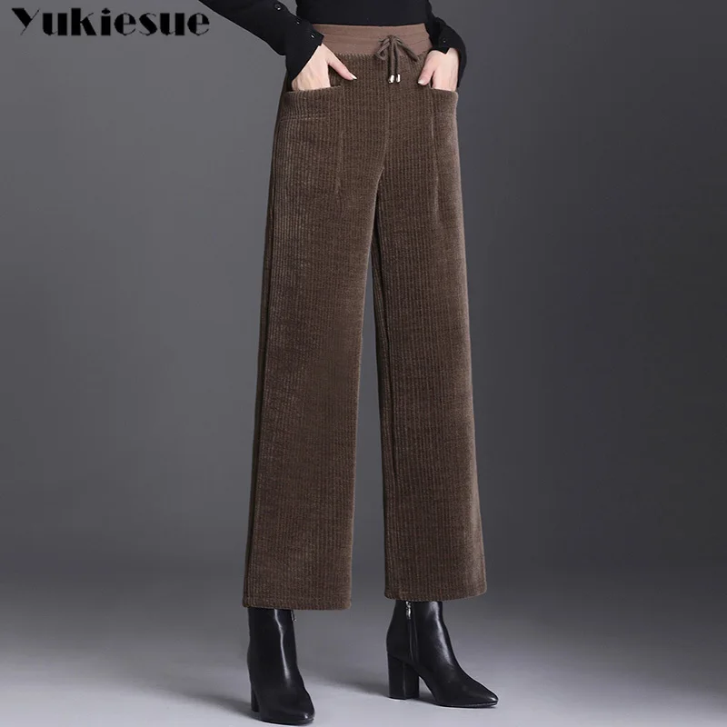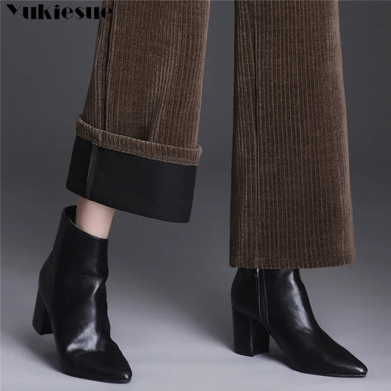 Плотные теплые флисовые вельветовые брюки, женские брюки с широкими штанинами и высокой талией, зимние повседневные длинные брюки в стиле Харадзюку, уличная одежда, брюки 2020