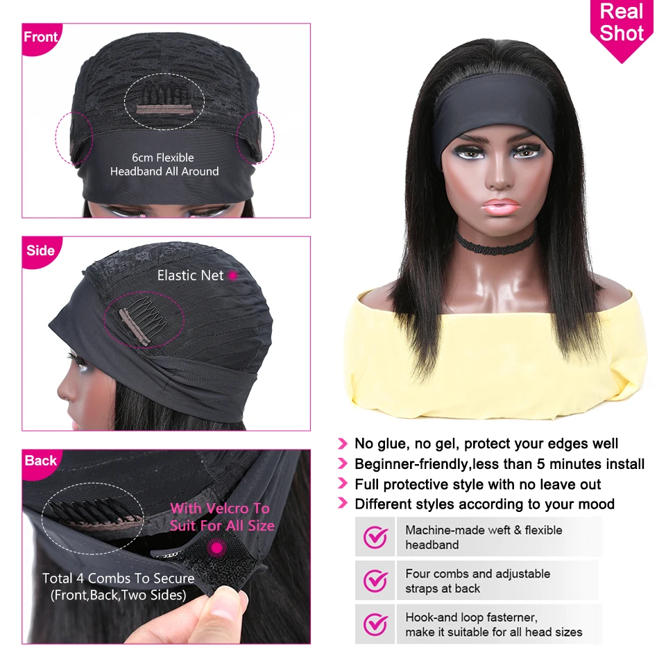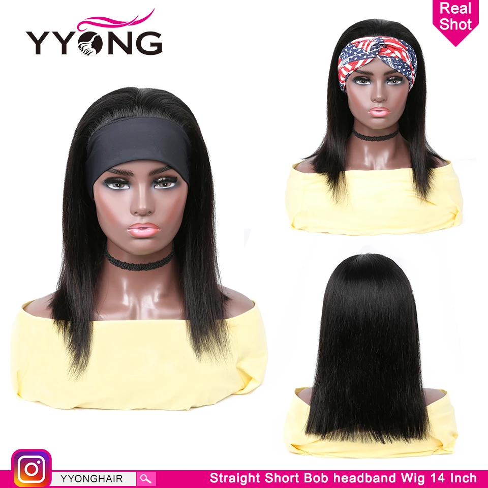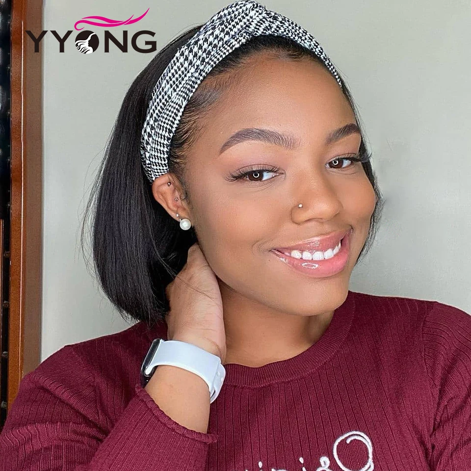 Парик Из прямых коротких волос YYong парик с головной повязкой s, с шарфом, 100%, 8-18 дюймов, без клея, парик с головной повязкой натуральный цвет