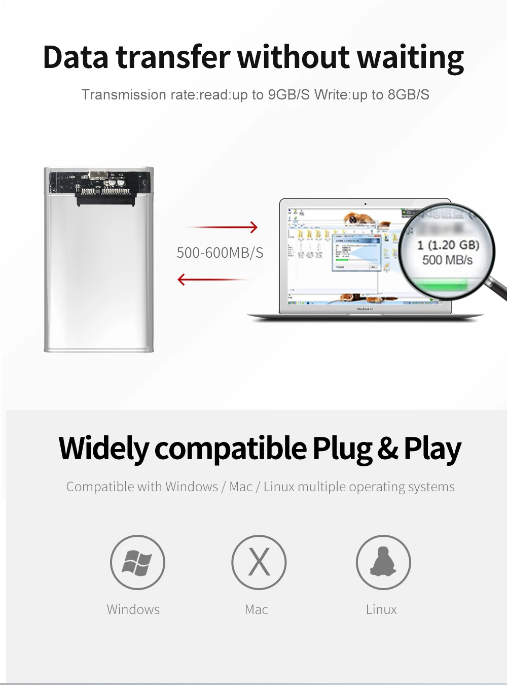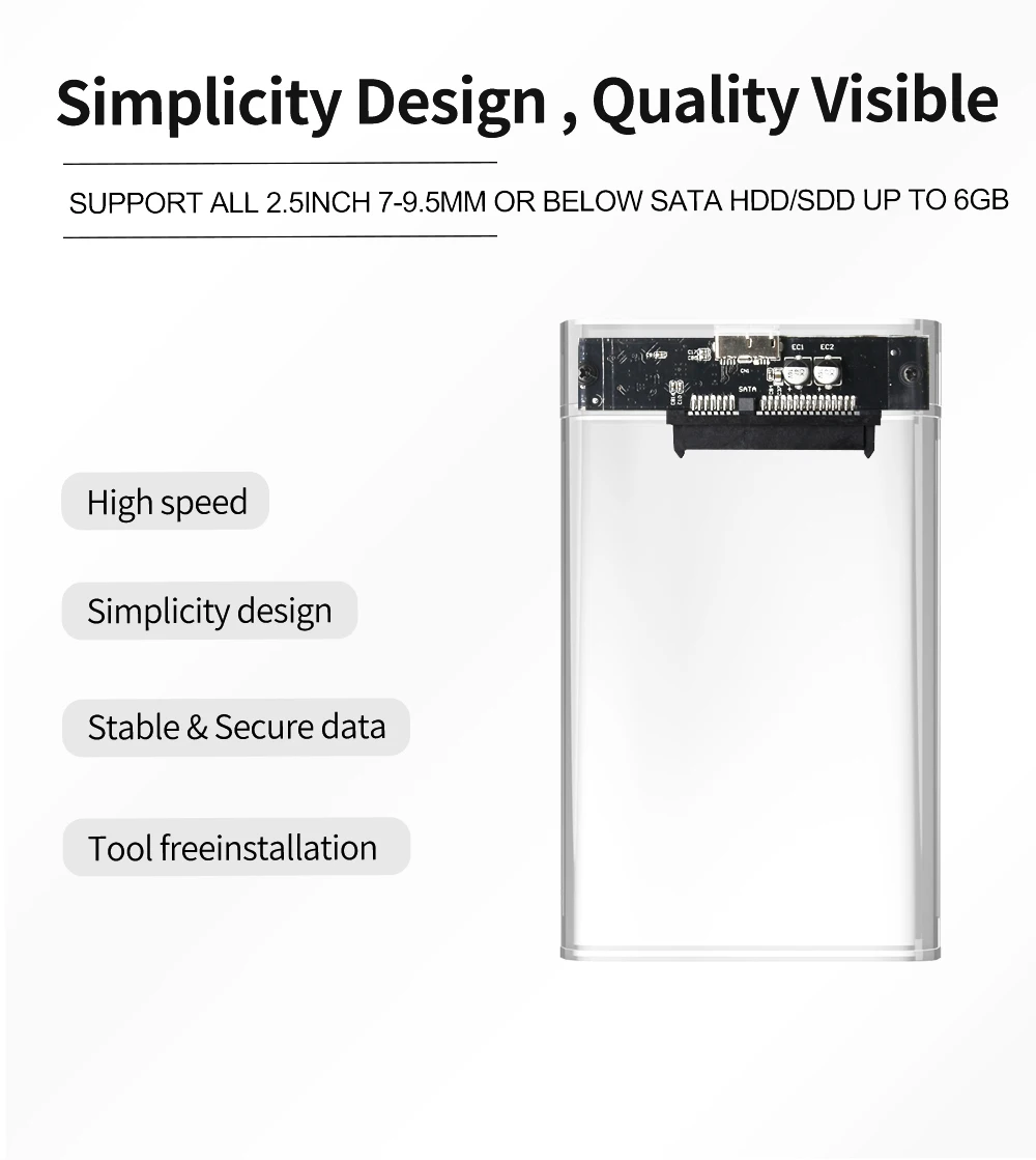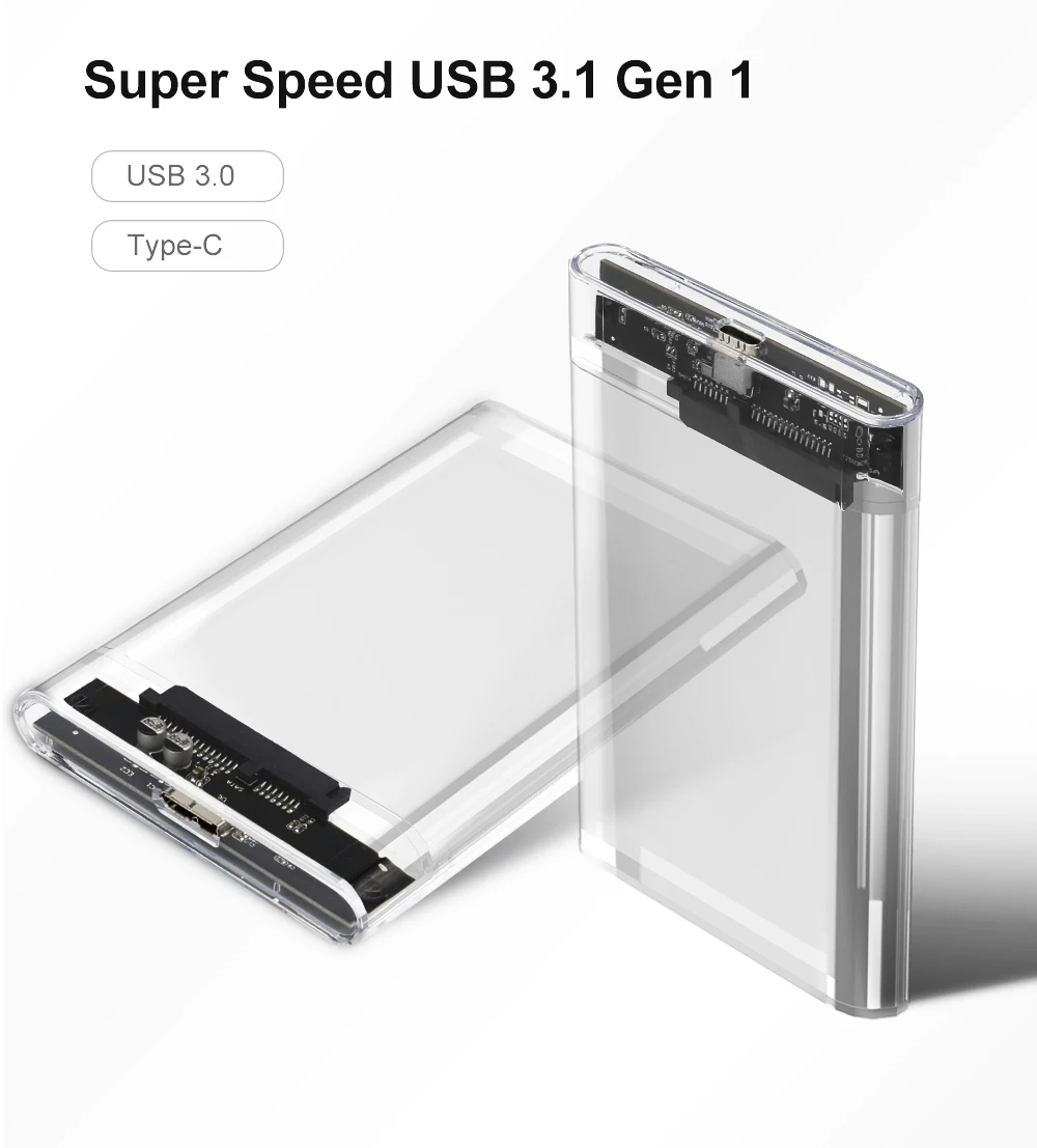 Прозрачный чехол TISHRIC для жесткого диска, бокс для жесткого диска, корпус для жесткого диска с интерфейсом 2,5 SATA на USB 3,0 Type-C USB 3,1, корпус для внешнего жесткого диска