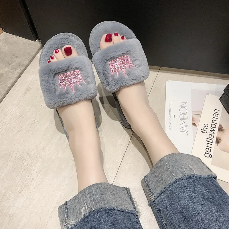 Тапочки женские меховые, с короной, зимние, плюшевые, теплые