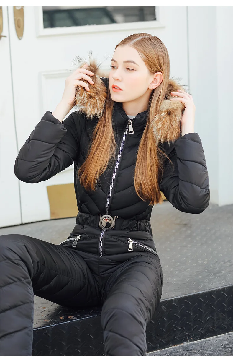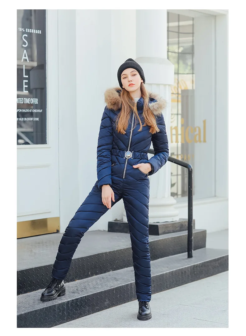 Женский зимний спортивный комбинезон для улицы, теплый лыжный костюм, водонепроницаемый комбинезон, зимний костюм с длинным рукавом, тонкий, однотонный, модный