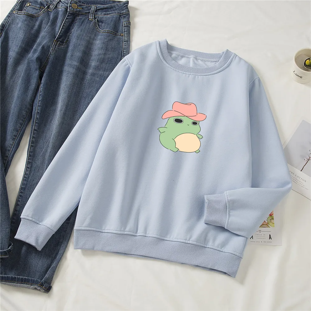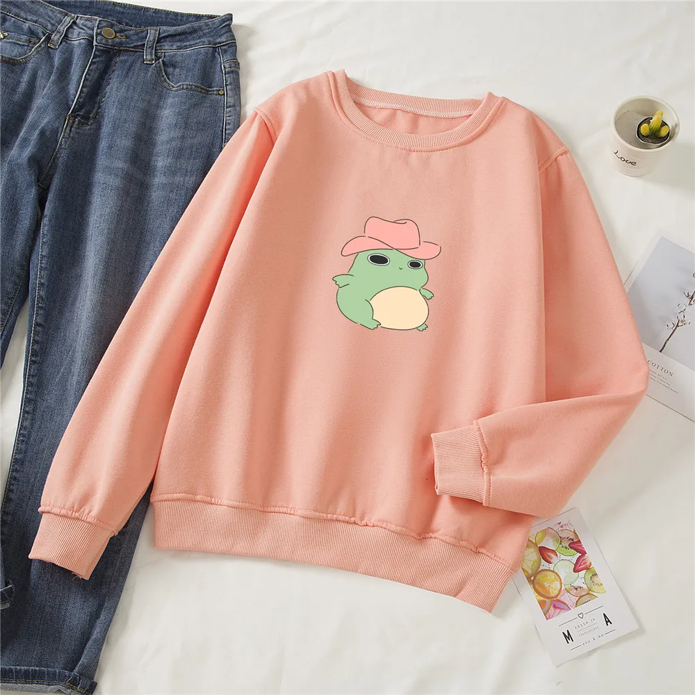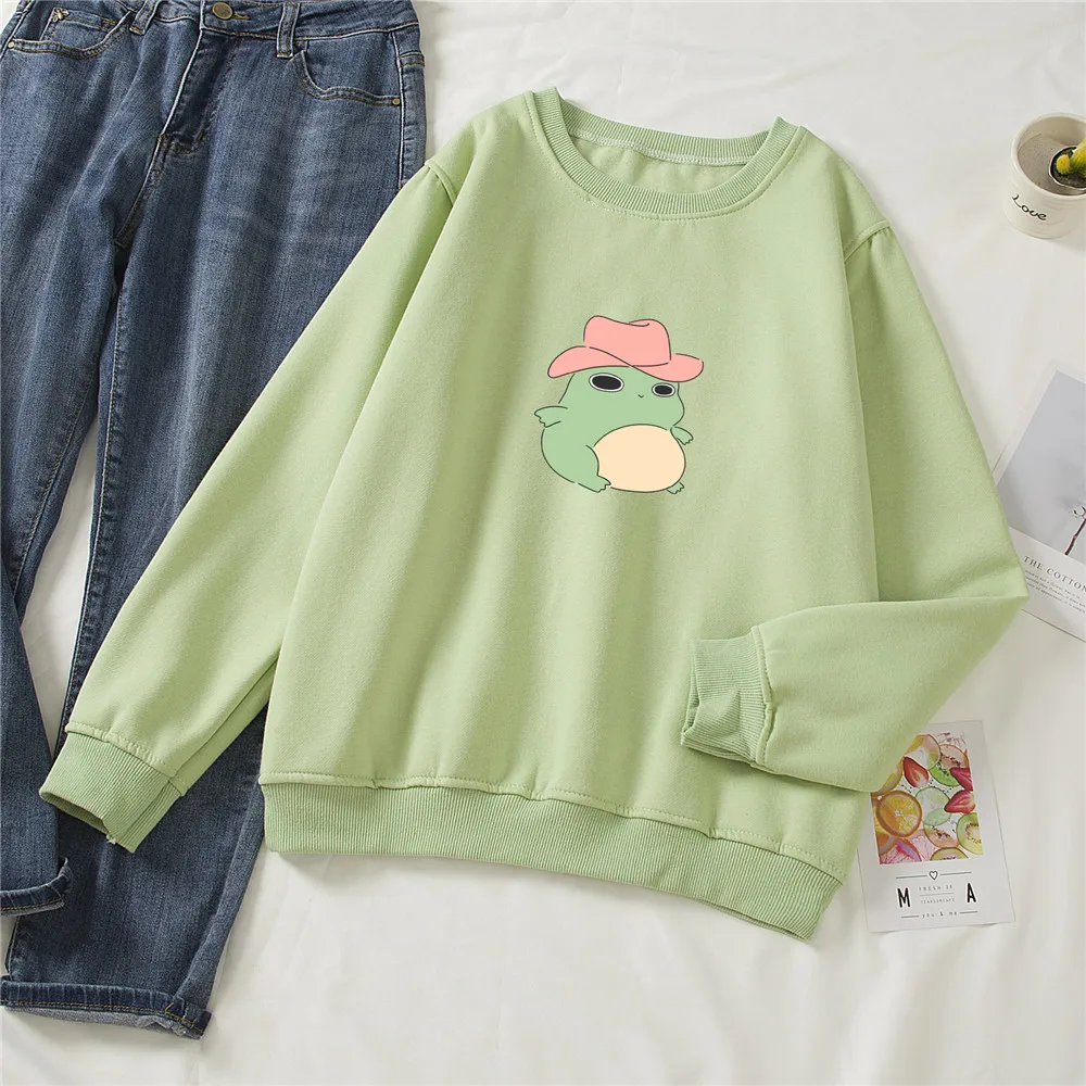 Женская толстовка с капюшоном и принтом лягушки, в стиле Харадзюку