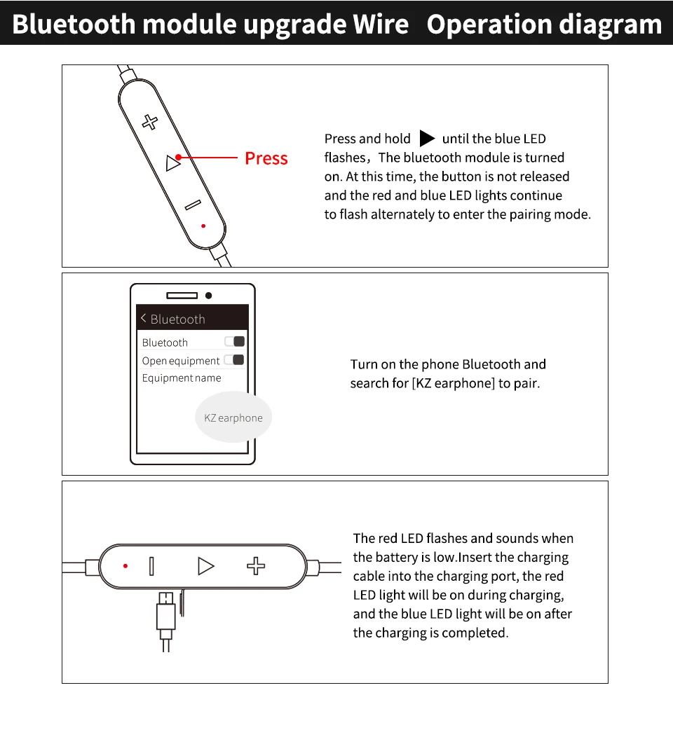 KZ беспроводной Bluetooth4.2 кабель, обновленный провод модуля 2PINMMCX с микрофоном для ASX ZSX EDX AS16 ZS3 ZSN PRO ZST X ZS10 C12 C10