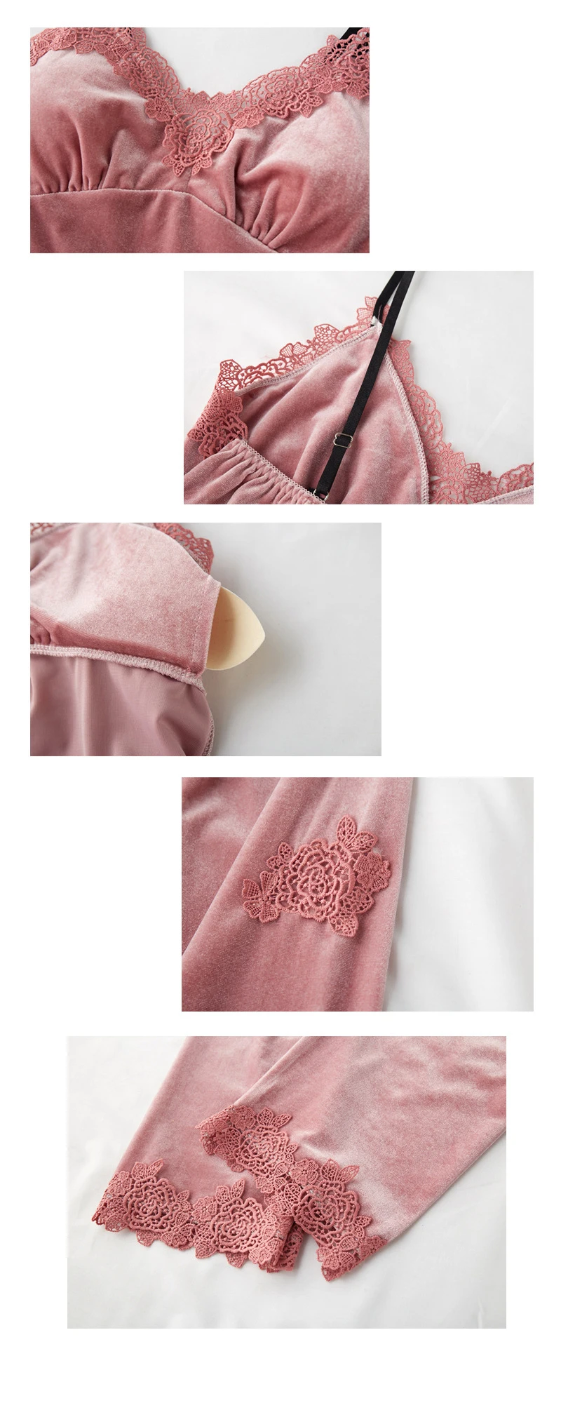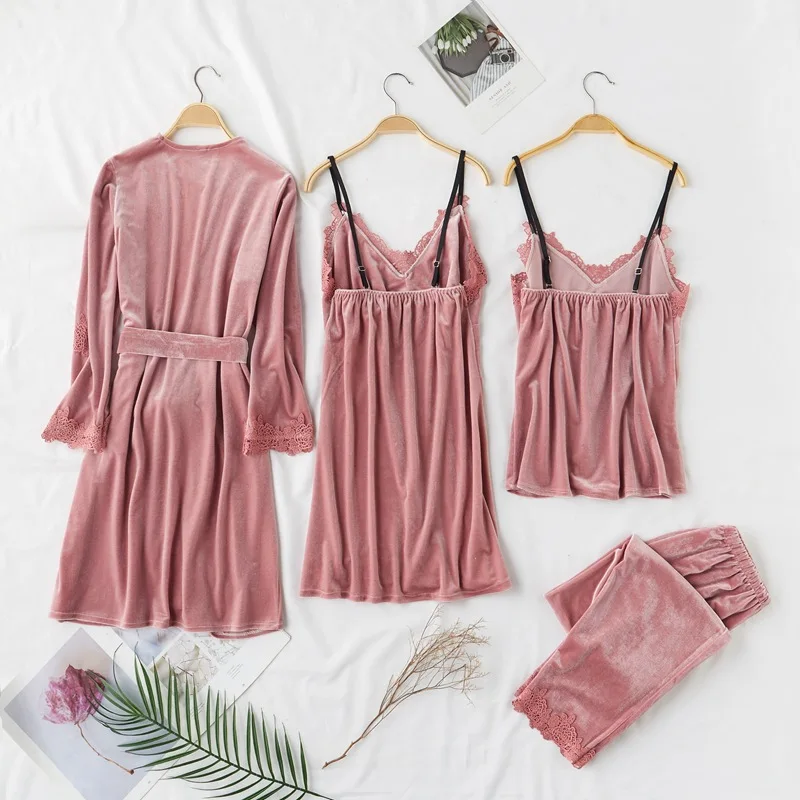 KISBINI Женские флисовые рубашки свободный комплект для девочек, сексуальное кружевное платье, комплект из 4 предметов Ночная сорочка на бретельках ночной халат Топ и штаны Зимние теплые Термальность Женская одежда для сна