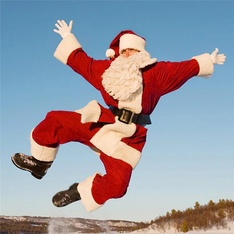 5/7 шт. Рождественский костюм Санта Клауса для косплея, нарядное рождественское платье для мужчин и взрослых, Фланелевые брюки, топ с поясом, шляпа и костюм с бородой
