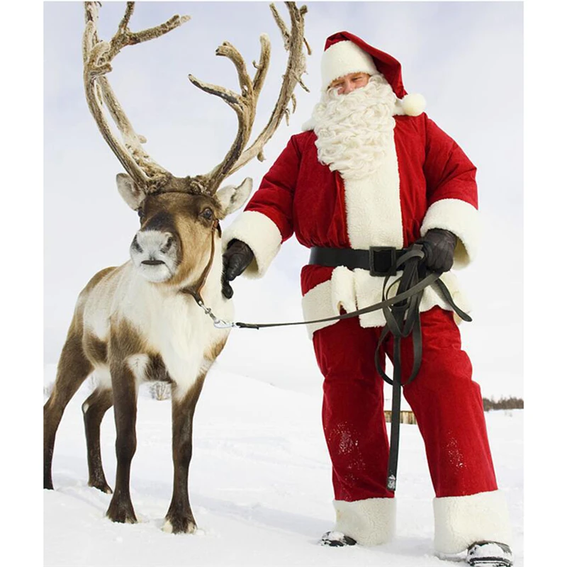 Рождественский костюм деда мороза, 57 шт., Рождественский маскарадный костюм для мужчин, Фланелевые брюки с ремнем сверху, шляпа и борода