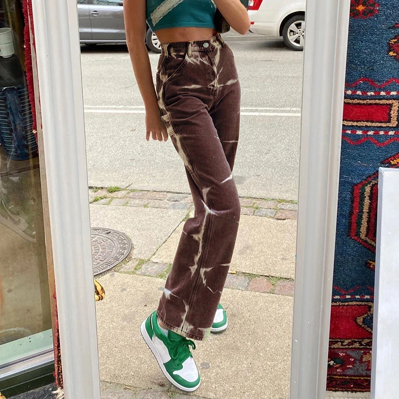 Джинсы женские, мешковатые, прямые, с завышенной талией, в уличном стиле