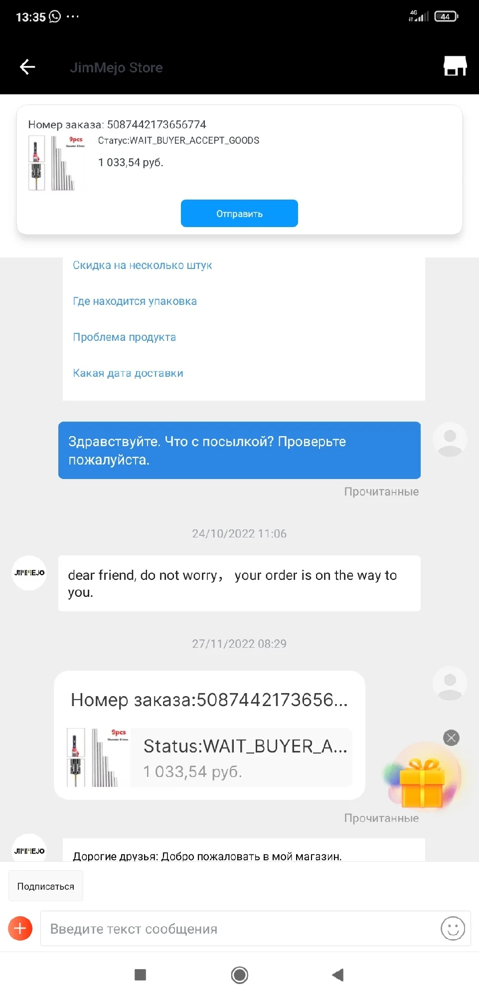 Страна: RU Доставка: Standard Shipping 13.01.2023