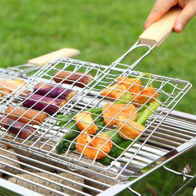 Портативная корзина для барбекю и гриля, зажим из нержавеющей стали для барбекю, антипригарный, сетчатый, для рыбы, гамбургеров, уличные принадлежности для кемпинга
