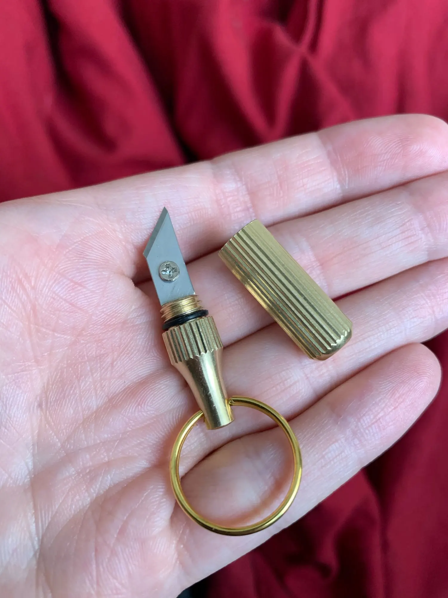 Нож супер! При осмотре багажа на внутреннем рейсе не был замечен)) Приобретался для помощи в упаковке и распаковке багажа, отлично с этим спаравился! Очень миниатюрный, качественный и острый. Закручивается плотно, есть резиновая прокладка.Жаль, что раньше такой не нашла. Очень советую!!!
