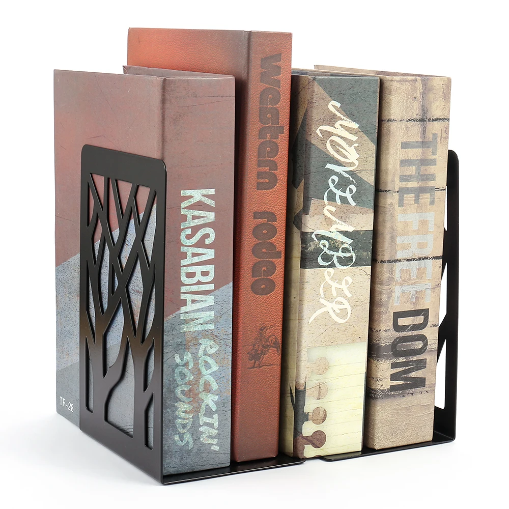 Лидер продаж 2020 г., креативные L-образные Чехлы для книг с изображением дерева и теней, черная Подставка для книг, металлическая подставка для книг, 1 пара