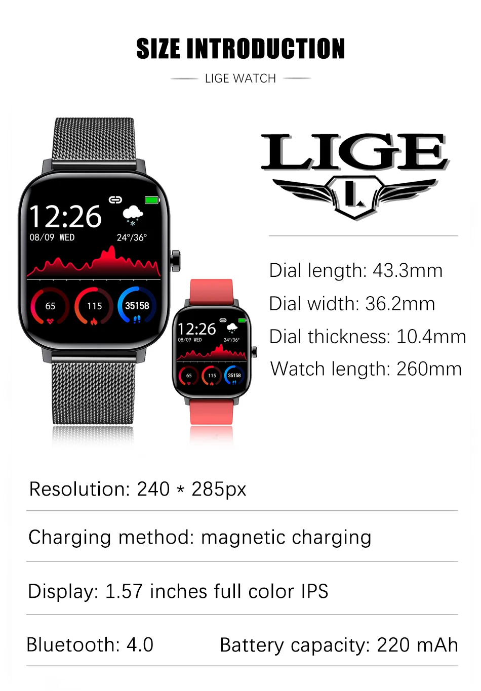 Смарт-часы LIGE P8 с цветным экраном, фитнес-трекером и тонометром