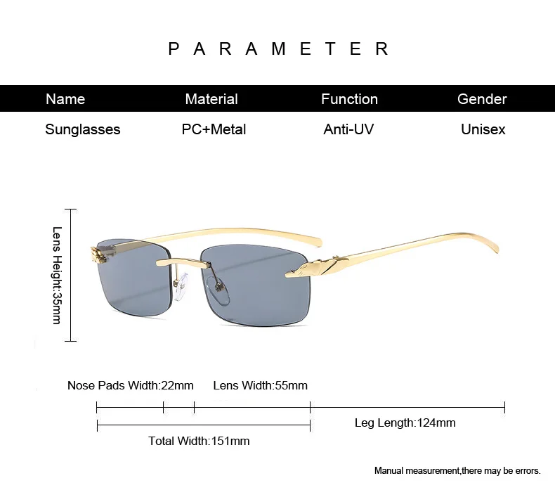 Солнцезащитные очки женские, прямоугольные, без оправы, с гепардом