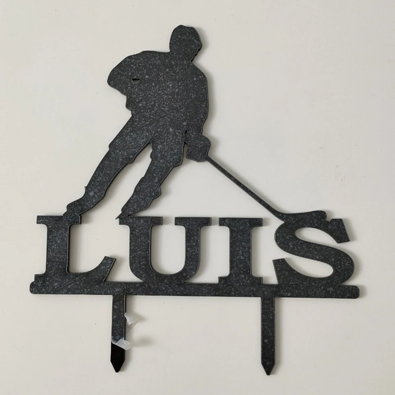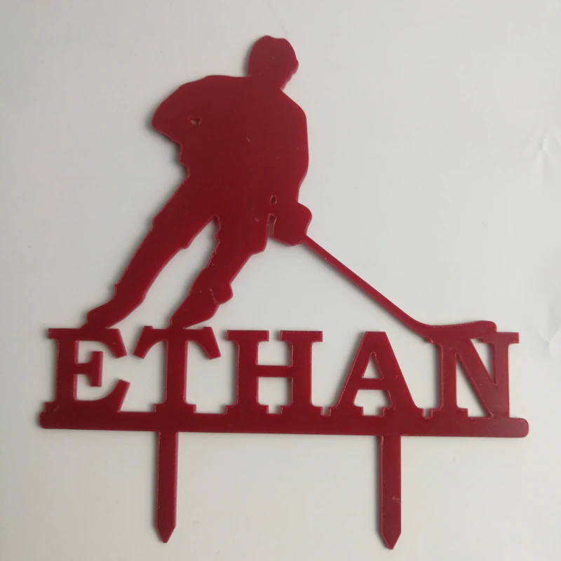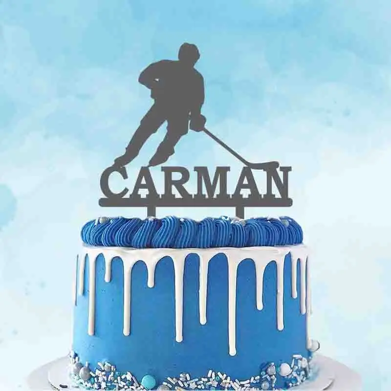 Персонализированный Топпер для хоккея с шайбой с именем на заказ, мужской игрок для хоккея с шайбой, украшение для торта на день рождения