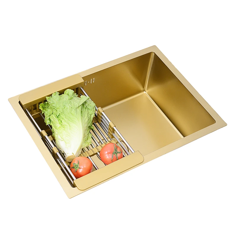 Золотая Кухонная мойка, Настольная раковина для мытья овощей, бесшо...