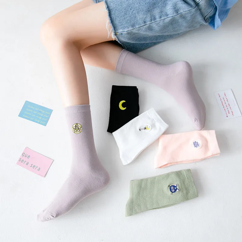 5 парупак. для женщин носки для девочек хлопковые носки для малышей с милым рисунком фрукты Harajuku осень-зима котенок кошка банан авокадо носки со смайликом женские Носки с рисунком
