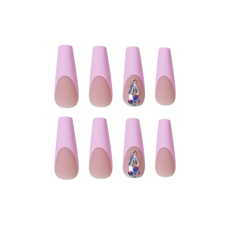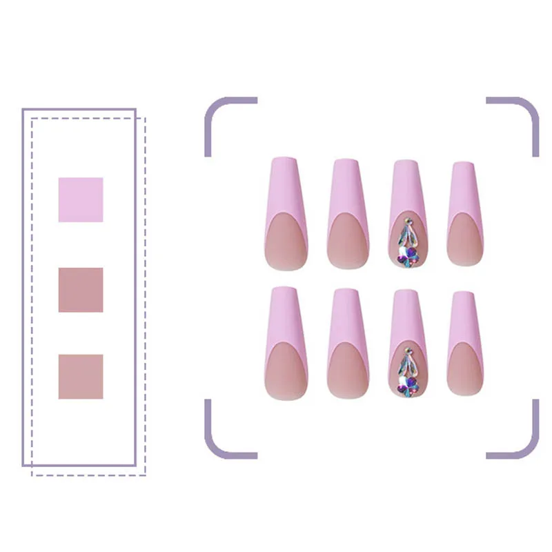 24 шт.коркор. Длинные акриловые накладные ногти розового цвета с по...