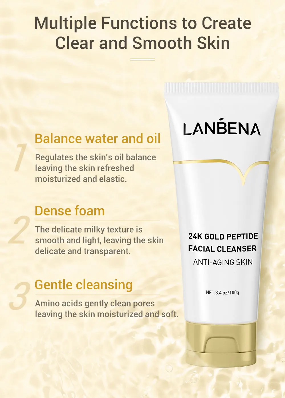 LANBENA 24k золотое пептидное очищающее средство для лица против морщин, Антивозрастная плотная пена, укрепляющая поры, антиоксидантная смазка для лица, мытье лица 100 г