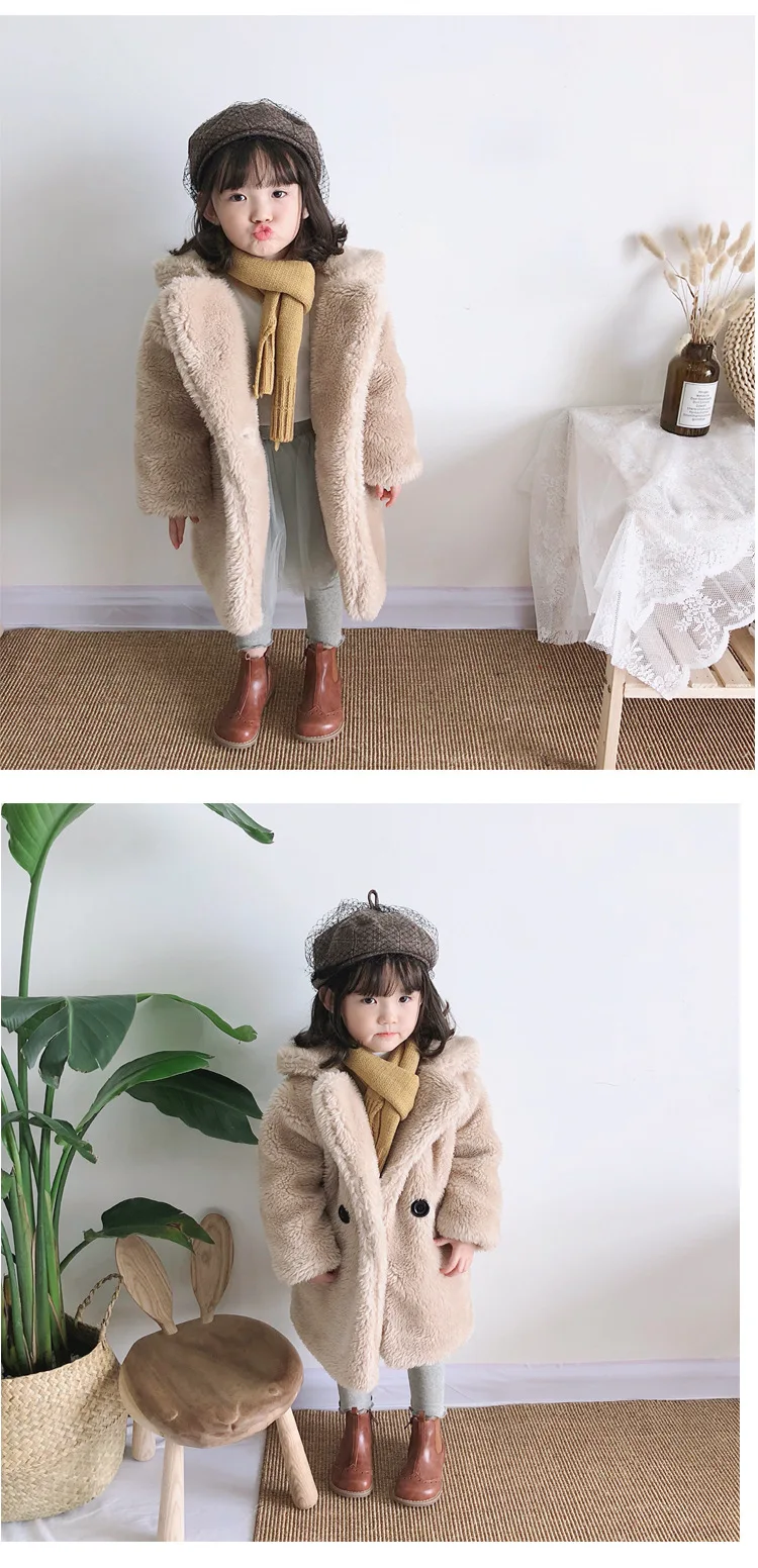 Новая осенне-зимняя детская одежда модное пальто из искусственного меха для девочек детское пальто с хлопковой подкладкой больших размеров шерстяная куртка для малышей