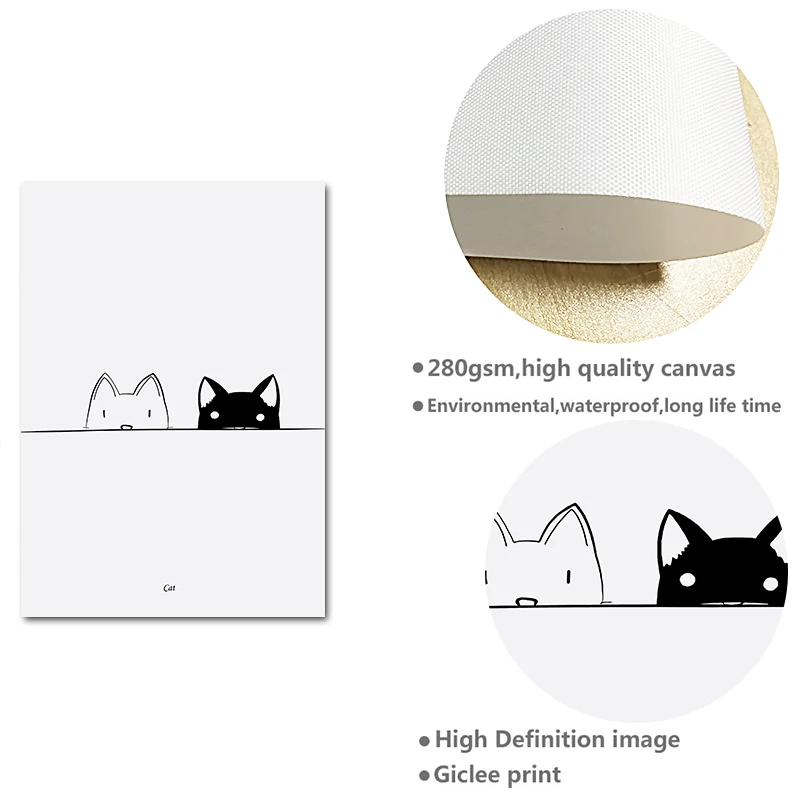 Nordic черный, белый цвет кошка портрет, холст, живопись на стену д...